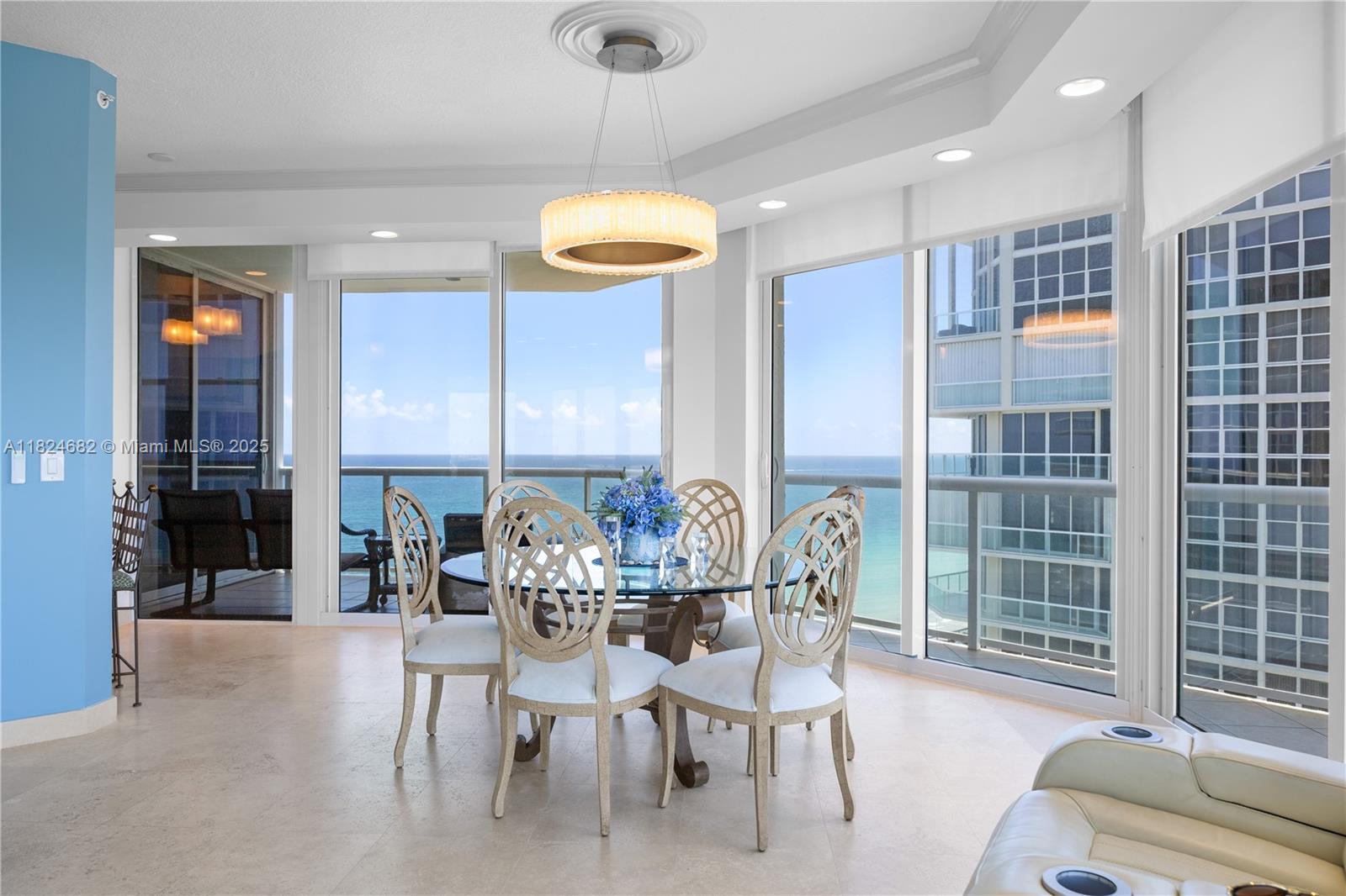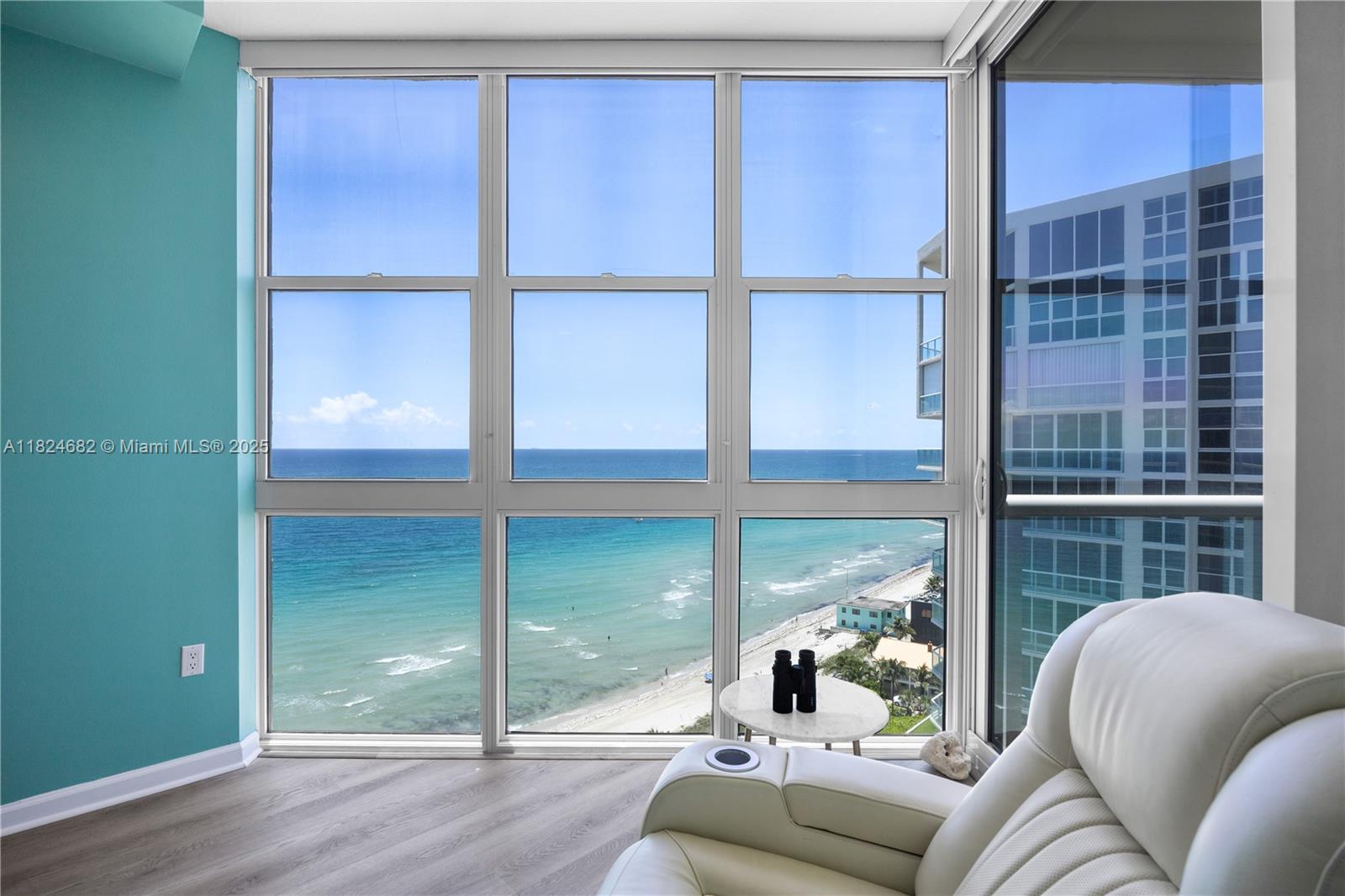 Wake to golden sunrises over the Atlantic and unwind to vivid sunsets dancing across the Intracoastal from this 16th-floor sanctuary at Renaissance on the Ocean. This 3-bed, 2.5-bath residence offers a sweeping wraparound terrace that invites sky, sea, and serenity into your everyday. Enter through your private elevator to discover floor-to-ceiling impact glass, a fluid connection between indoor elegance and coastal air. Two assigned parking spaces add rare convenience. Nestled between Hollywood and Dania Beach, the location offers a tranquil vibe with easy access to waterfront dining and scenic views of passing boats. Indulge in resort-style amenities: 24/7 security, valet, beach service, two pools, tennis courts, a fitness center, sauna, steam room, and on-site café.