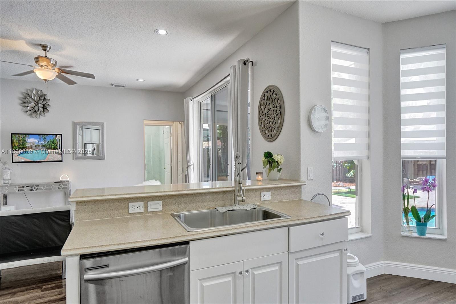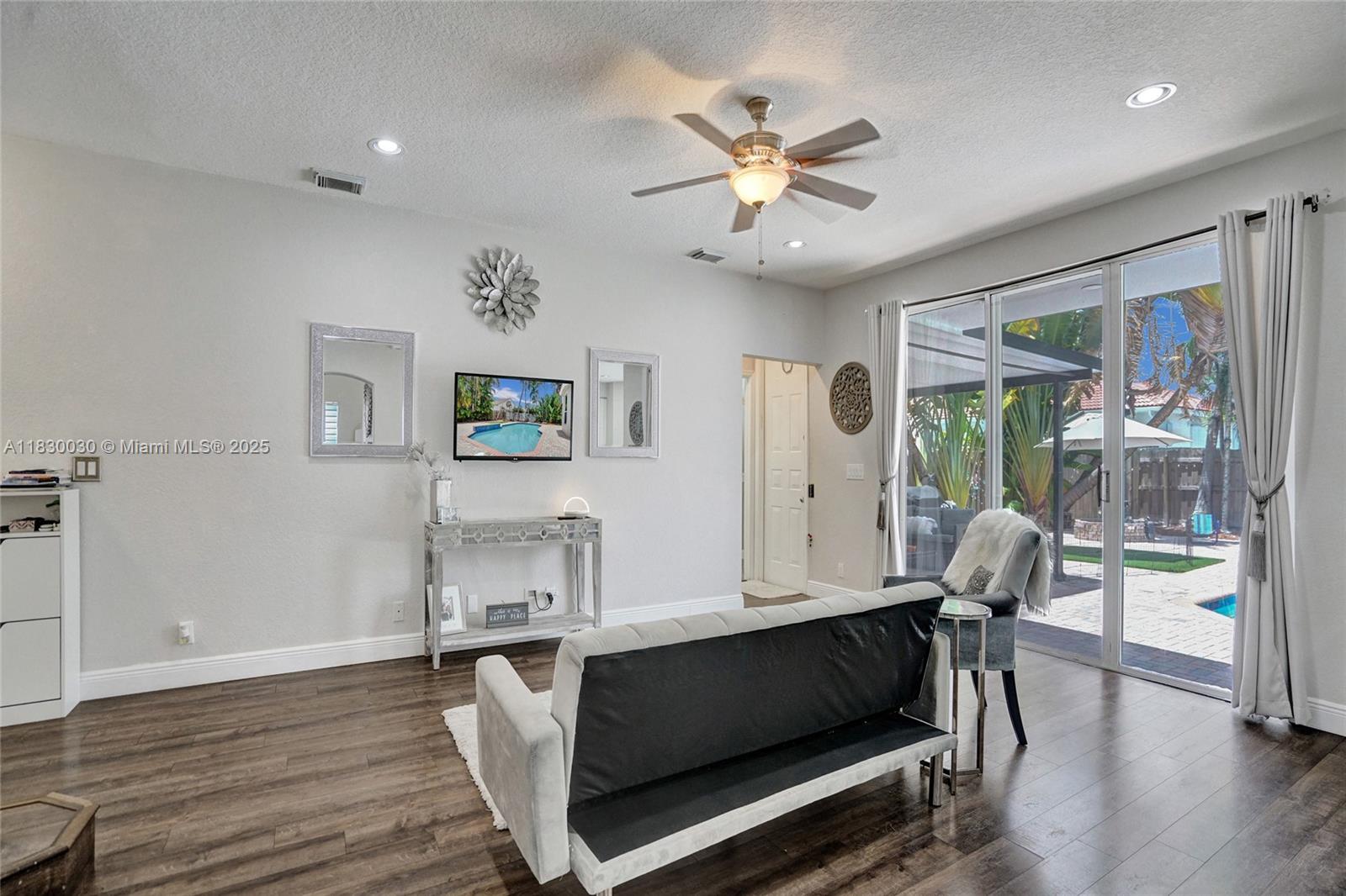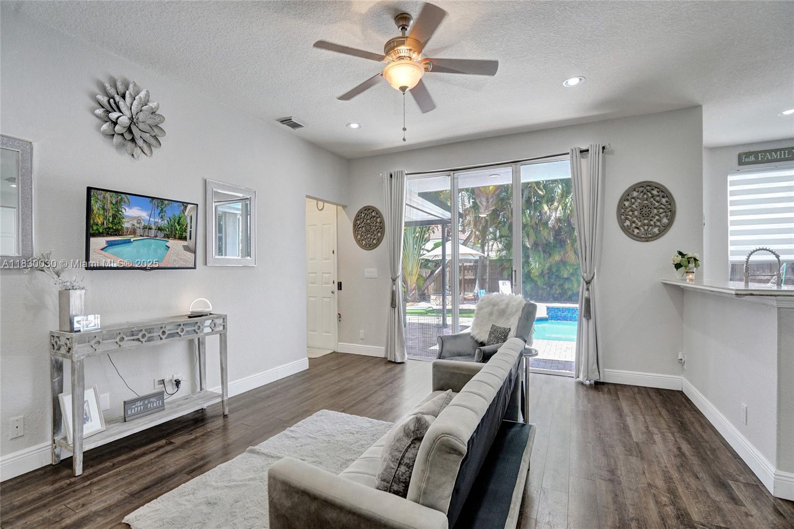 Welcome to this beautifully upgraded 6-bed,3-bath The WILOW Model home, located in the highly desirable gated community of OAKRIDGE .spacious residence is move-in ready and perfect for both family living and entertaining.Enjoy the spacious layout, modern and the comfort of living in one of the most sought-after neighborhoods.This is truly a home where style meets function,Features include Newer A/C new water heater,Renovated bathrooms & laminate flooring throughout ,sparkling pool with new diamond-bright finish and skimmer,Electric vehicle charging Ready,Converted third garage currently used as a gym (can be easily converted back) Accordion Hurricane Shutter in the 2nd floor, Large backyard with a pergola & plenty of space to lounge or entertain, community with tennis courts and a tot lot