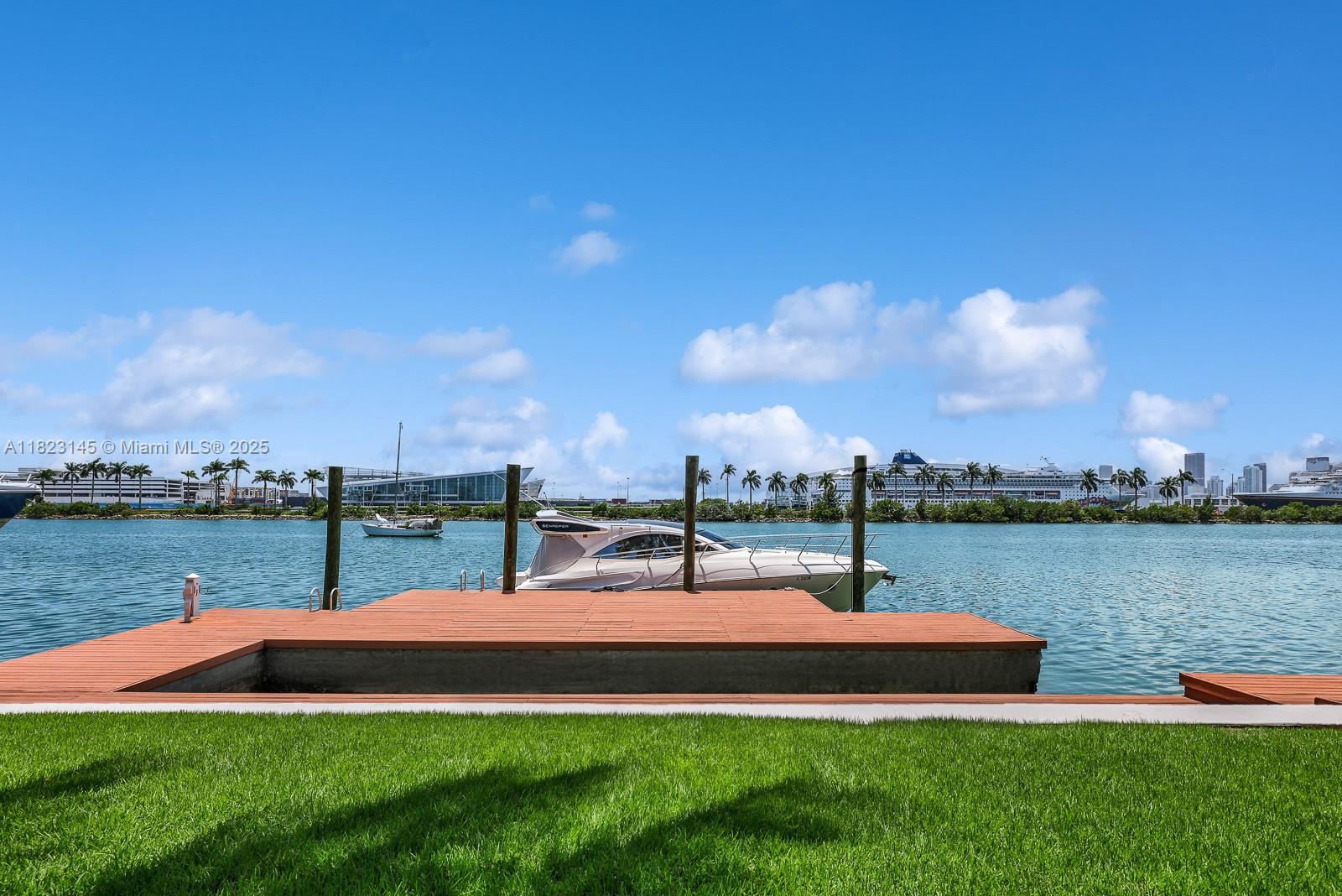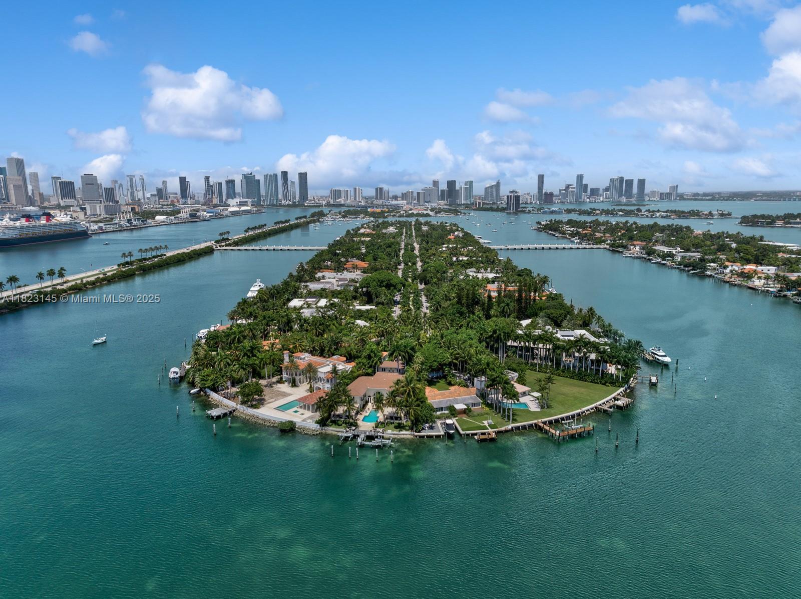 In a league of its own, this modern estate redefines luxury living on guard gated Palm Island. Nestled on an expansive 32k SFlot, enjoy 9 beds 8/1 baths perfectly set on 13,144 SF. The chef's kitchen is an epicurean delight, featuring top-of-the-line appliances, a walk-in refrigerator, & stunning water views. The expansive primary suite offers an oversized marble bathroom, generous closets, & private balcony overlooking the bay. Entertaining is elevated to an art form with multiple outdoor spaces seamlessly woven into the estate's design, showcasing breathtaking skyline views. Highlights include a wine cellar, movie theater, gym, dedicated staff quarters with dual rooms, a pet room, & an elevator. A private dock, 100 ft of water frontage, & direct ocean access complete this masterpiece.