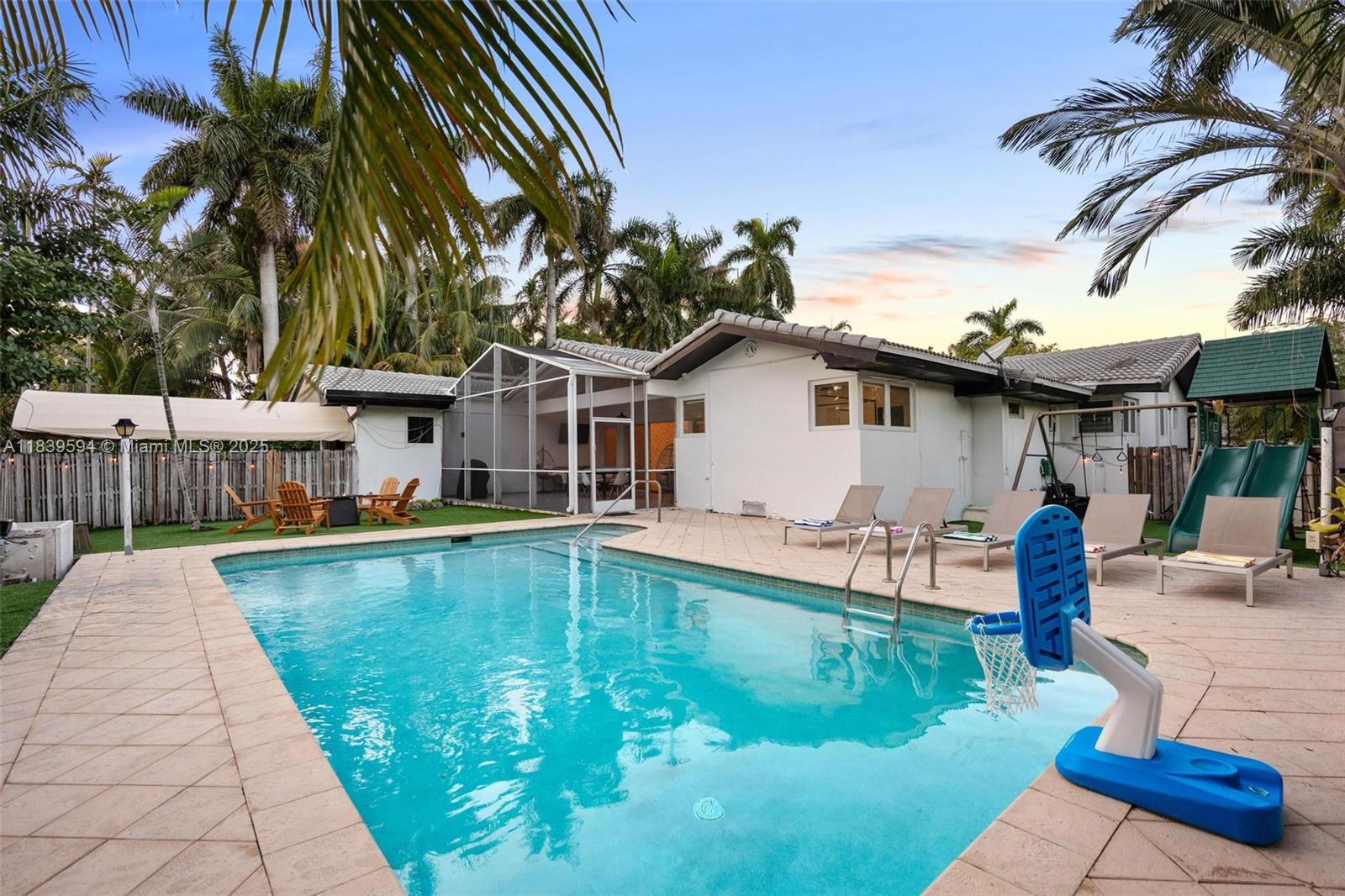 Stunning and elegant mid-century estate nestled in the prestigious Hollywood Lakes neighborhood. This distinctive 6-bedroom, 4-bath residence with huge open floor plan and soaring ceilings, beautiful bathrooms and chef kitchen with stainless steel appliances and massive island made for incredible dining with our beautiful dining room area and table this house is ready to move in great out door space and deck and pool in huge double lot with brand new roof just 2 years old and all furniture included for this incredible price. This is the best priced 6 bedroom in the hollywood market and wont last.