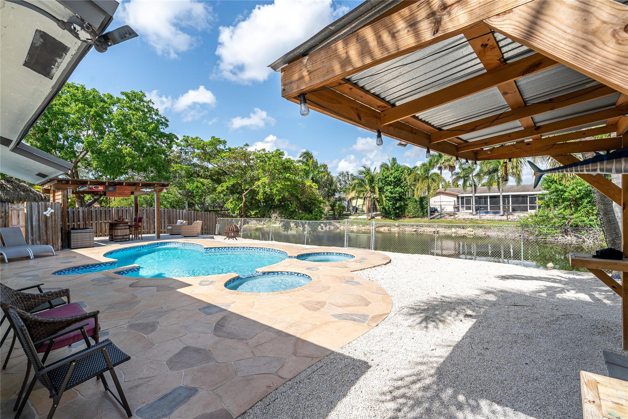 Here it is, the one you have been looking for! Tucked away on a cul-de-sac for privacy, this home offers comfort, luxury and a great place to entertain. Vaulted ceilings make this home feel spacious and welcoming. Substantially remodeled throughout, the kitchen features new stainless steel appliances, hardwood cabinets and granite countertops. Outside is an entertainer's dream! Recently resurfaced pool, covered outdoor living area, separate covered BBQ area, pool with hot tub, all overlooking the waterfront with great fishing, kayaking or canoeing. This home has been meticulously maintained with a BRAND NEW ROOF! Come and see today as this home will not be on the market long!