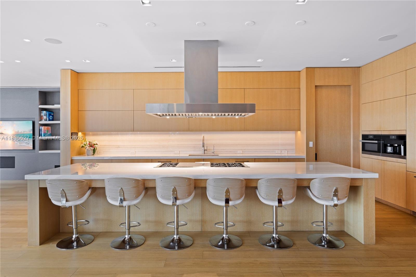 RARE VENETIAN ISLANDS TROPICAL MODERN WATERFRONT ESTATE WITH DIRECT DOWNTOWN MIAMI CITY SKYLINE VISTAS OVER THE BAY ON THE COVETED SOUTH-SIDE OF SAN MARINO ISLAND! Bayfront Residence on OVERSIZED 15,750SF LOT & A HALF w/90FT of Waterfrontage. Multi-Vessel IPE Dock w/Lift & Jet Ski platforms. 5 Large Suites w/Ensuite Baths + 2 Powder Rooms + Office + Family Room + Theater. Open Floorplan wrapped by 10 FT Telescopic Fleetwood Glass Doors. Blonde Oak Floors & Eat-in Kitchen w/Gas Range & Miele Appliances. Catering Kitchen w/Pantry + Breakfast Area, Wine Room & Bar. Primary Suite w/Panoramic Sunsets over Miami Skyline w/2 Closets. Bookmatched Marble Bath w/Deep Soaking Tub. Keystone Terraces to Expansive Rooftop. Negative-edge Pool + Summer Kitchen + Cabana Bath. Privacy Gate + 2 Car Garage.