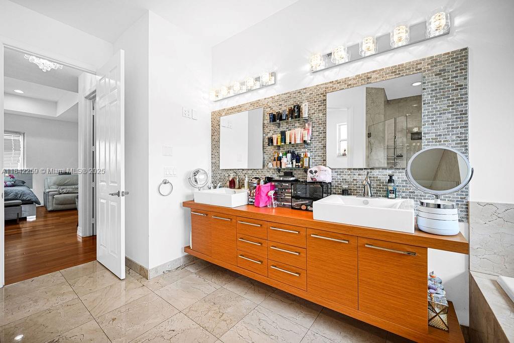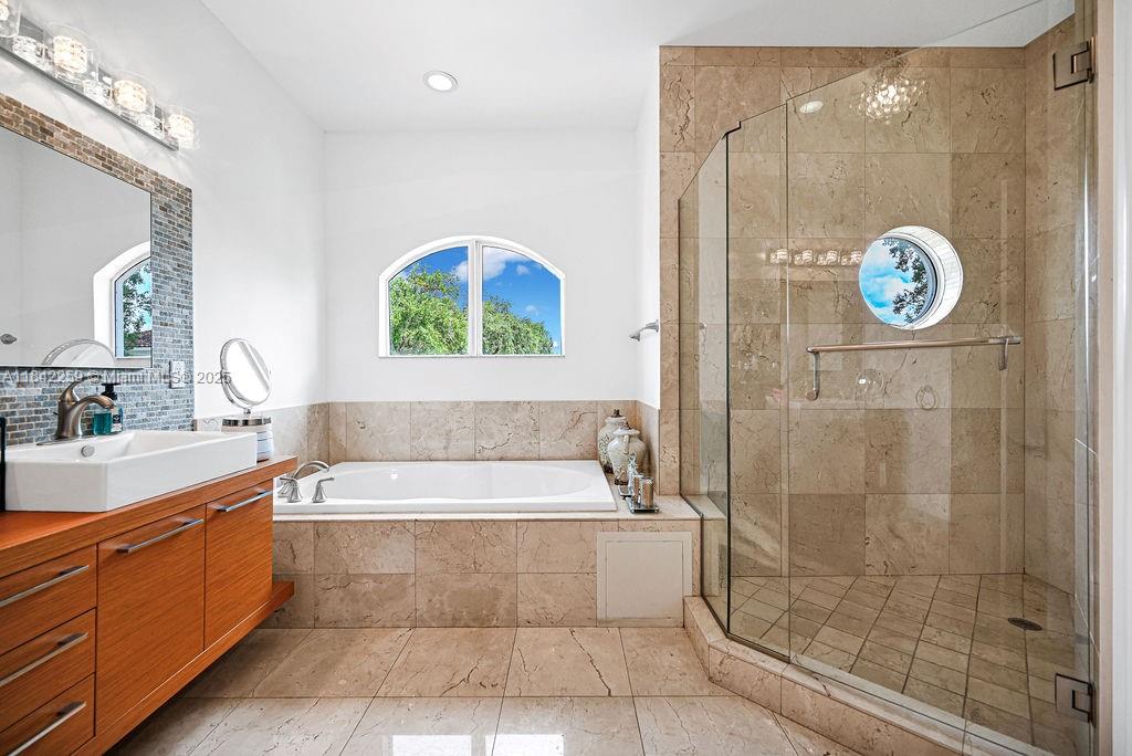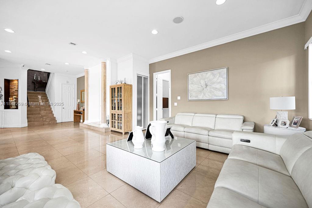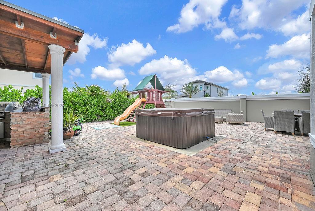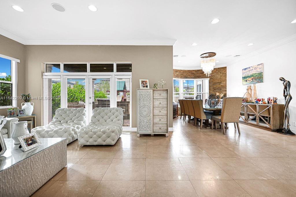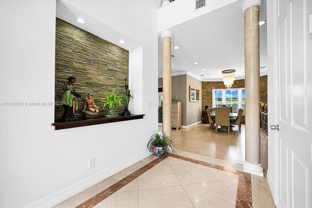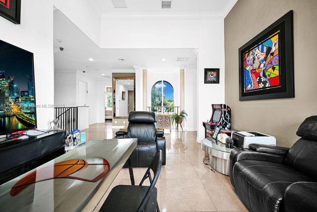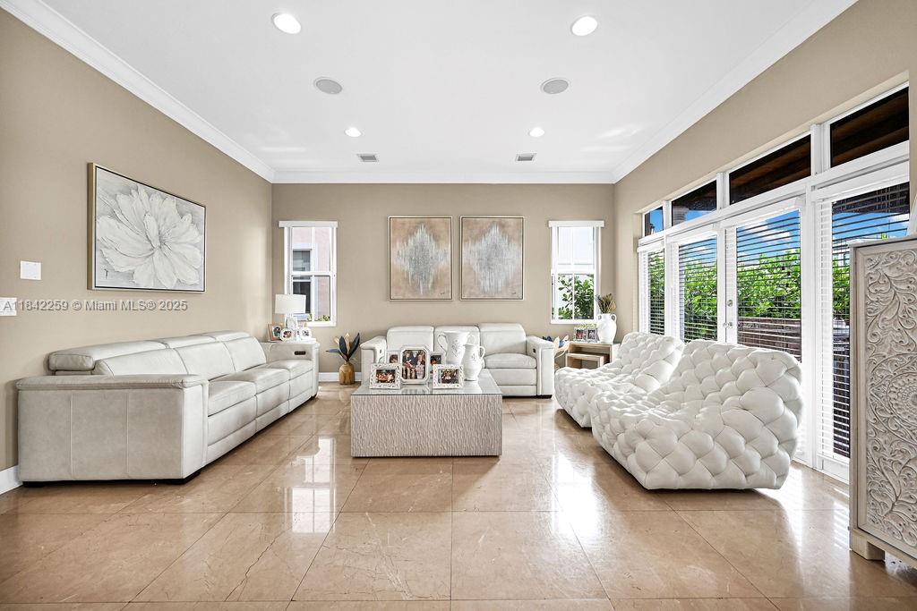 Impeccably upgraded Alamo model in Forest View Estates—a private, gated enclave of just 31 homes beneath mature oaks in sought-after Emerald Hills. This 5-bed + loft (easily convertible to a 6th), 5-bath residence offers over 4,300 sqft of luxurious living space. Features include a brand-new 2024 roof, soaring ceilings, full first-floor suite, impact windows/doors, smart wiring, and custom wood & marble flooring. The chef’s kitchen showcases GE Profile appliances, oversized island, and a walk-in pantry, flowing into expansive living and dining areas ideal for entertaining. The grand primary suite offers dual walk-in closets, a spa-style bath, vaulted ceilings, and a serene ambiance. Zoned for A-rated schools, near houses of worship, golf, beaches, dining, and major highways.