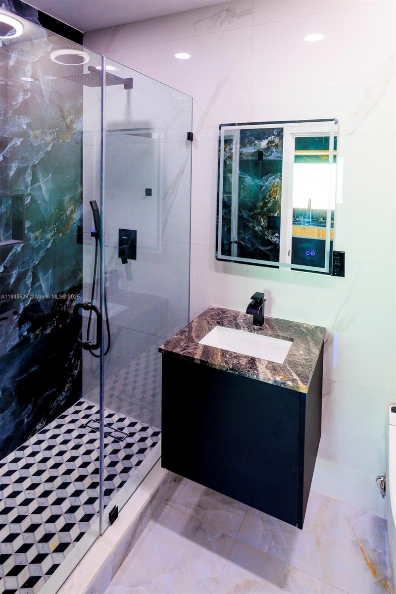 Totally remodeled luxury property located in Miami Design District adjacent Buena Vista area. 3 bedroom, 2 bathroom main residence and detached 1 bedroom, 1 bathroom guest house with kitchen, living room, bedroom and bathroom also fully upgraded. A legal two unit property, ideal for rental income or private In-laws quarters. Modern sleek European kitchen and bathrooms with Bluetooth smart toilets. property features premium finishes throughout, including custom closets. High impact doors, windows, new roof, central A/C, electric, plumbing etc.. Completely gated/fenced with exterior LED lighting and lighted aluminum roofed patio with electric all set for a summer kitchen. This is a turnkey property.