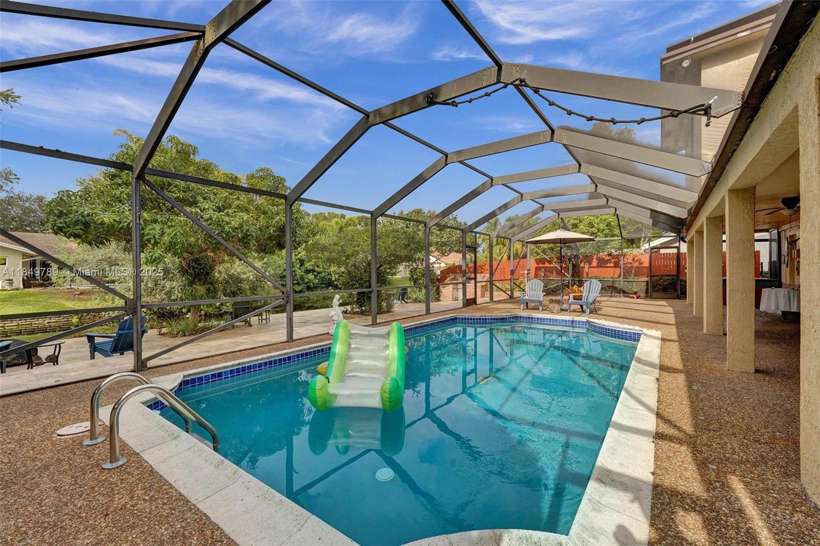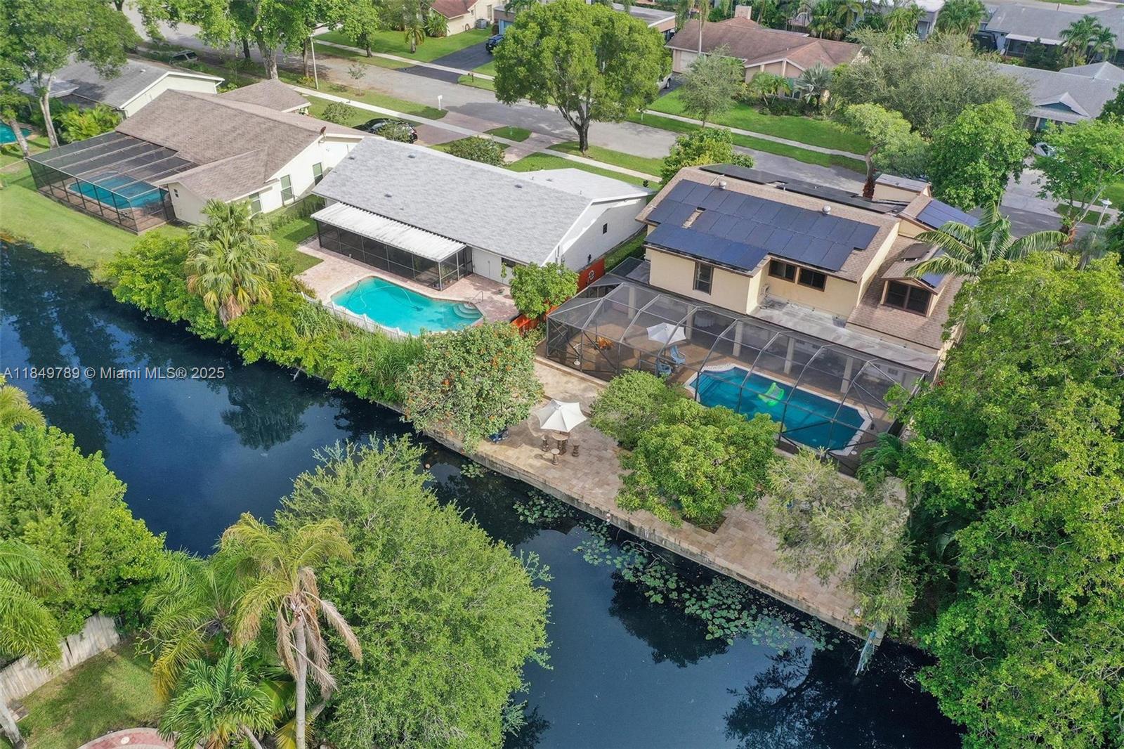 OPEN HOUSE SATURDAY FROM 12-2PM! Welcome to your dream home in the heart of Cooper City! This stunning 4-bedroom, 2 full bath & 2 half bath waterfront pool home offers the perfect blend of luxury, comfort & functionality. Nestled in one of South Florida's most sought-after cities and located within a top school district, this 2-story gem is a true must-see! The screened-in pool and patio area is surrounded by lush landscaping and a variety of fruit trees, creating your own private oasis. Enjoy Florida living at its finest with a spacious patio ideal for relaxing or hosting guests. Circular driveway, some impact windows, Roof (2018); Solar Panels (2019) two A/C Units; EV Charger, huge Shed!. $31 per month to City for canal maintenance.