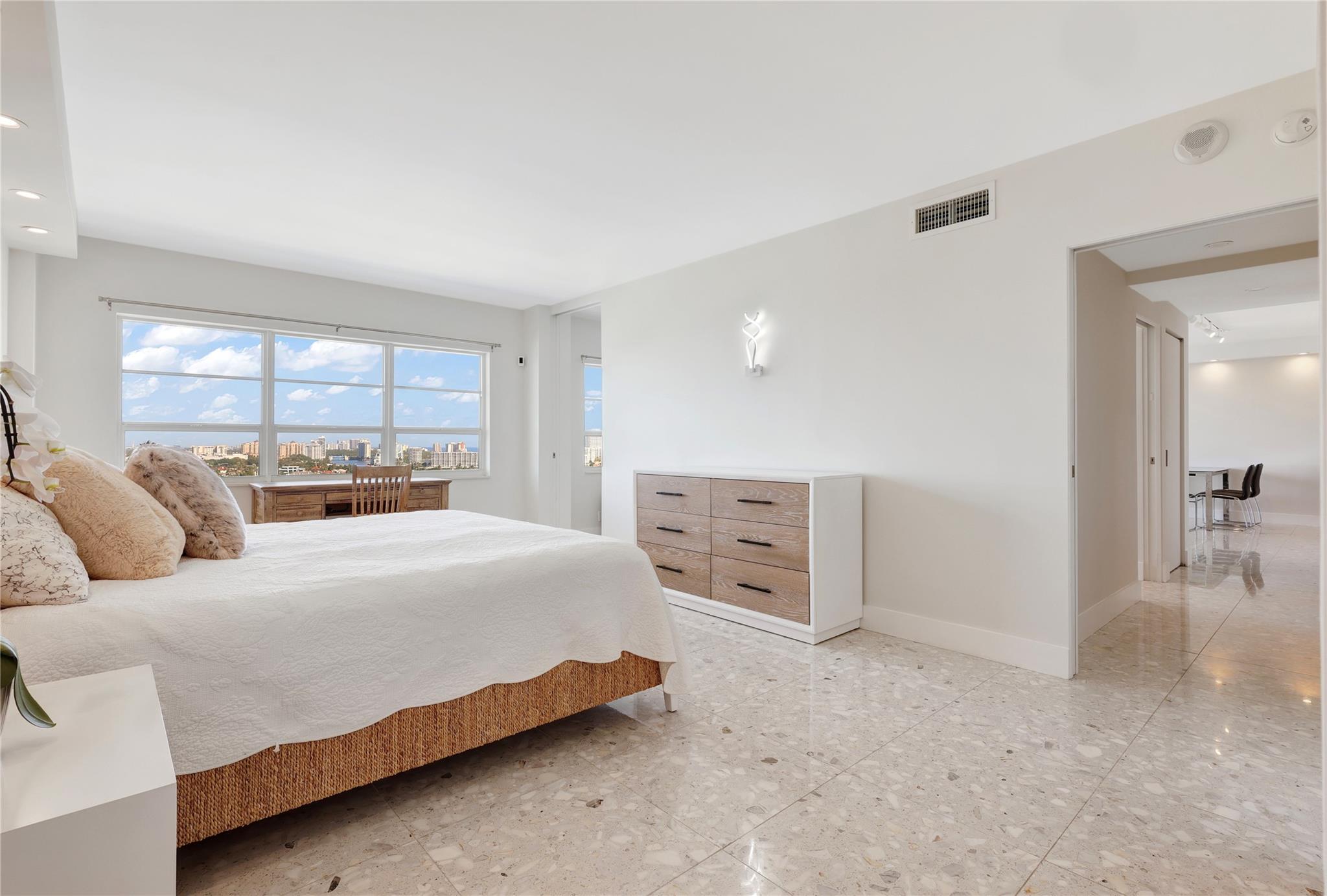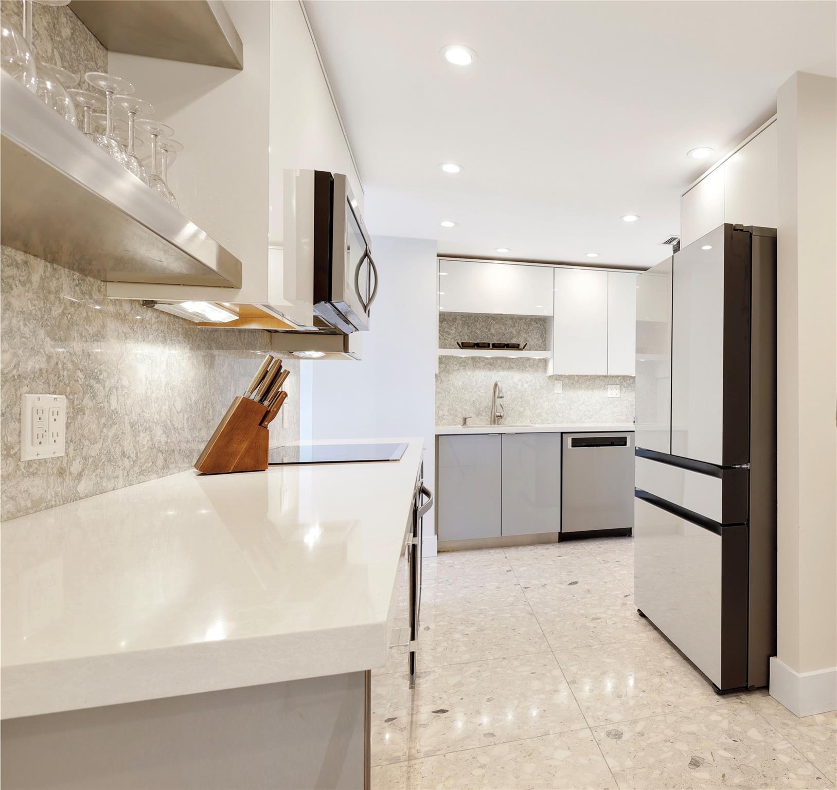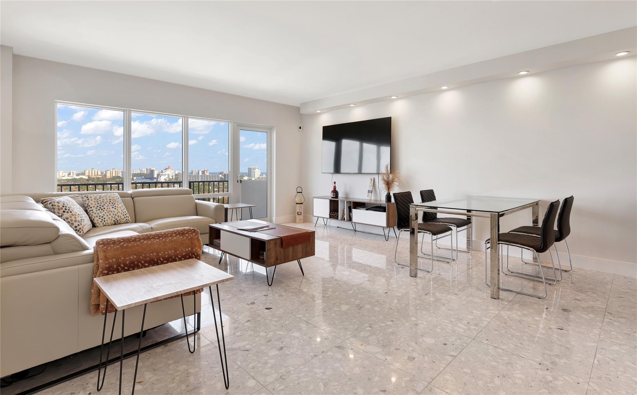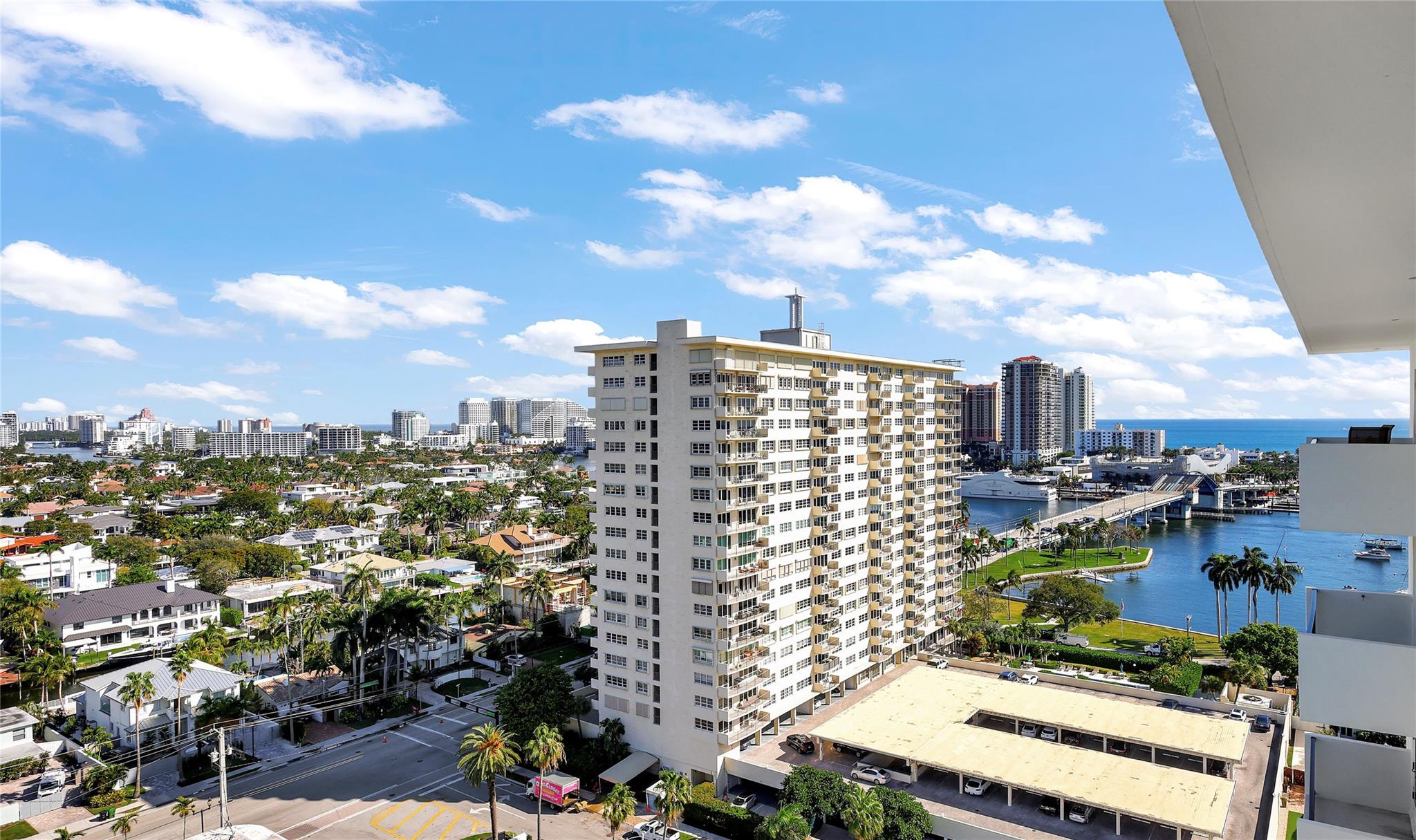 REMODELED PENTHOUSE!! This 2BR/2BA Penthouse has panoramic ocean, intracoastal & downtown views from every window. Just steps from famous Las Olas Blvd and a short walk to Fort Lauderdale Beach! This unit was completely gutted and redesigned to maximize space with an expansive kitchen and multiple closets all with lighted built-ins. Composite marble floors, all pocket doors and high-end finishes throughout. The building completed a multi-million dollar renovation and boasts new Matrix gym, zero edge pool, fully equipped outdoor kitchen with pergola, perfect for entertaining guests. 24hr doorman offering concierge service, security cameras and under-building parking. Walk to surrounding restaurants and marinas. Low HOA fees, fully funded reserves and re-certification complete! Pet friendly!