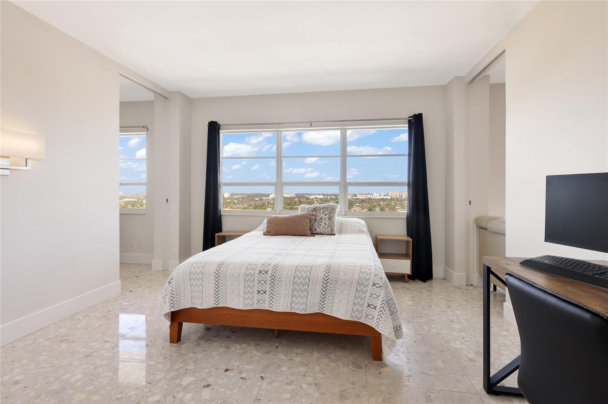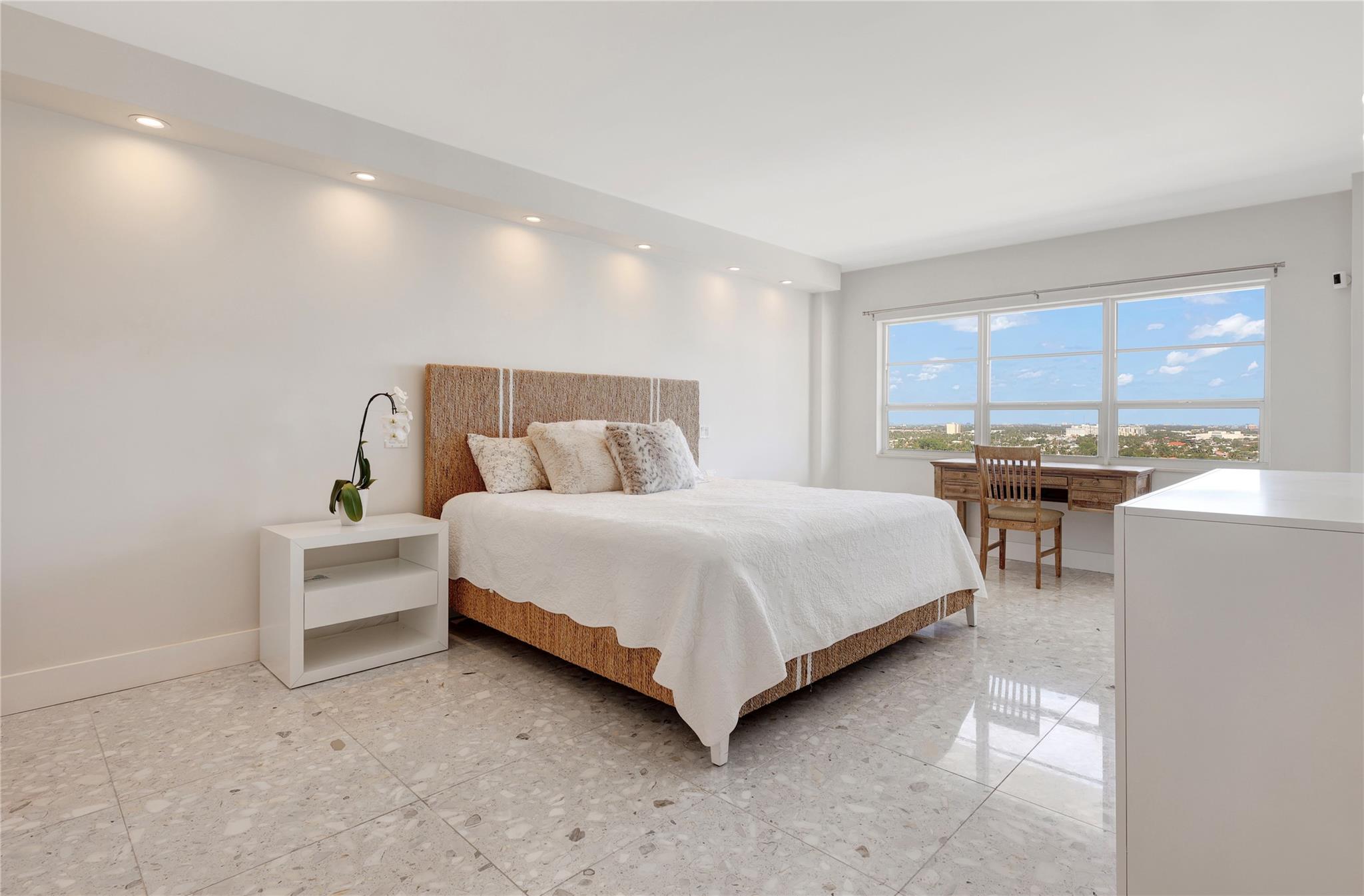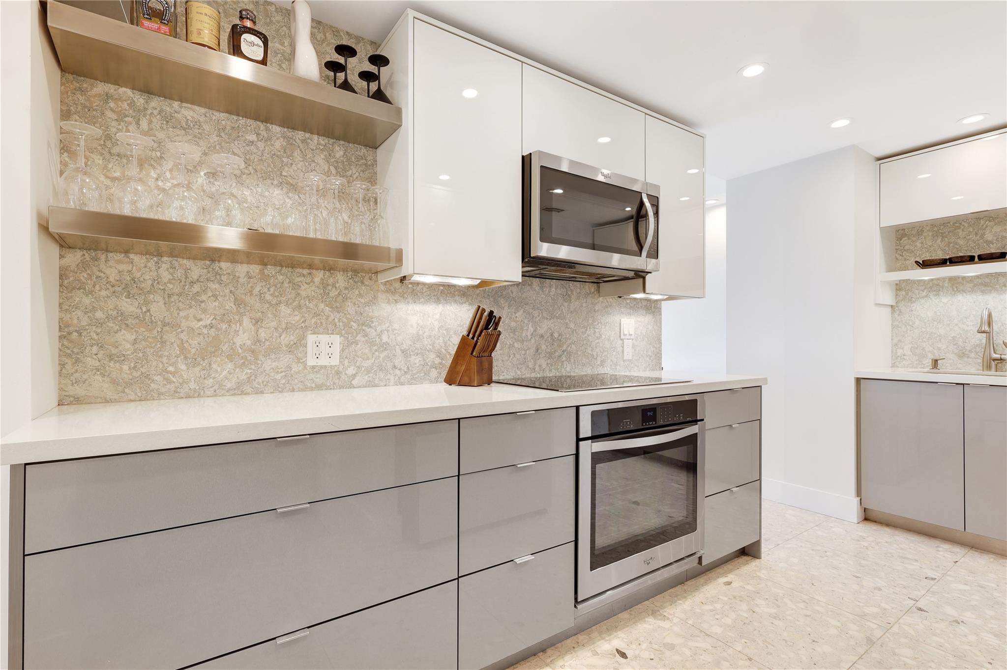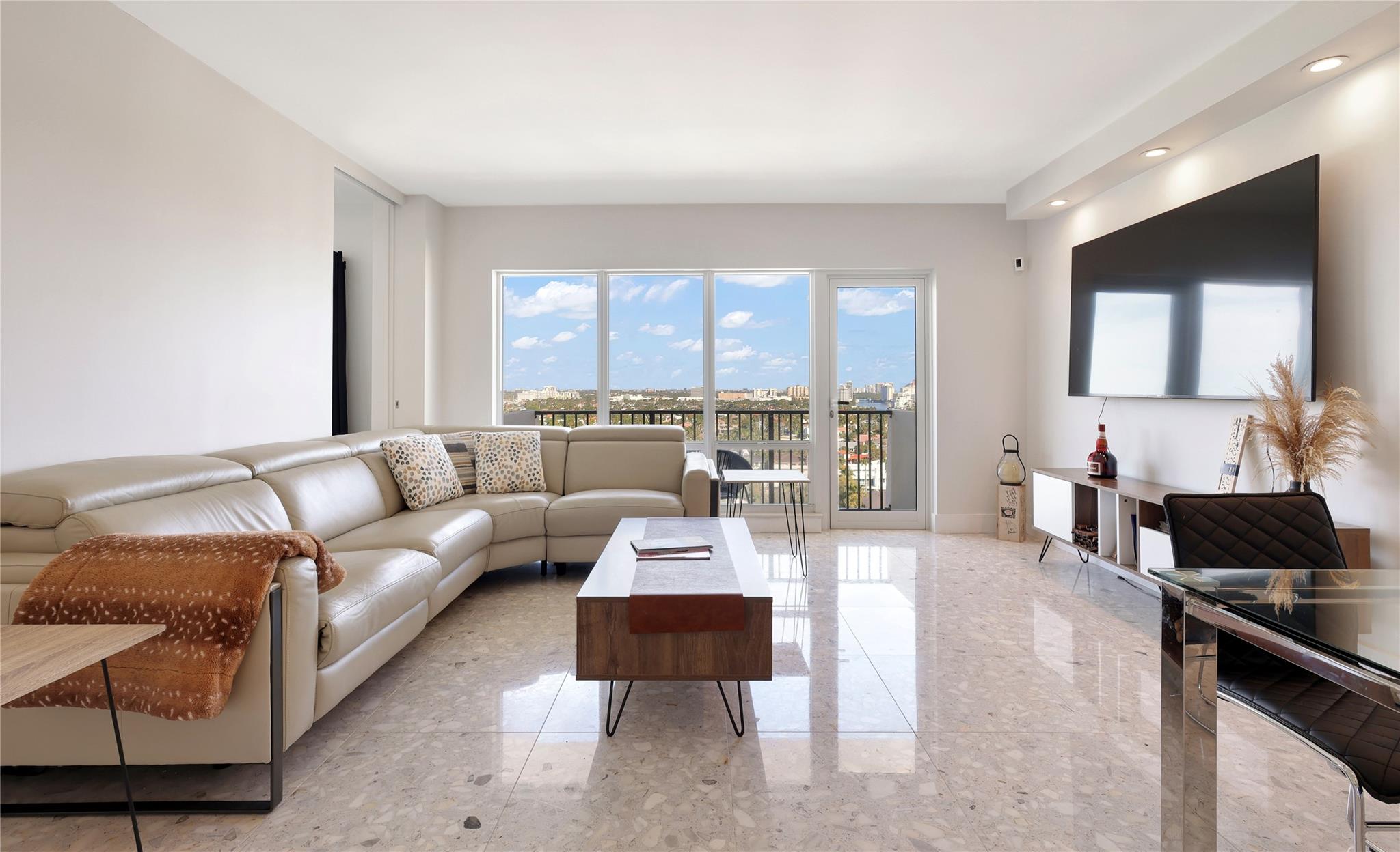 REMODELED PENTHOUSE!! This 2BR/2BA Penthouse has panoramic ocean, intracoastal & downtown views from every window. Just steps from famous Las Olas Blvd and a short walk to Fort Lauderdale Beach! This unit was completely gutted and redesigned to maximize space with an expansive kitchen and multiple closets all with lighted built-ins. Composite marble floors, all pocket doors and high-end finishes throughout. The building completed a multi-million dollar renovation and boasts new Matrix gym, zero edge pool, fully equipped outdoor kitchen with pergola, perfect for entertaining guests. 24hr doorman offering concierge service, security cameras and under-building parking. Walk to surrounding restaurants and marinas. Low HOA fees, fully funded reserves and re-certification complete! Pet friendly!