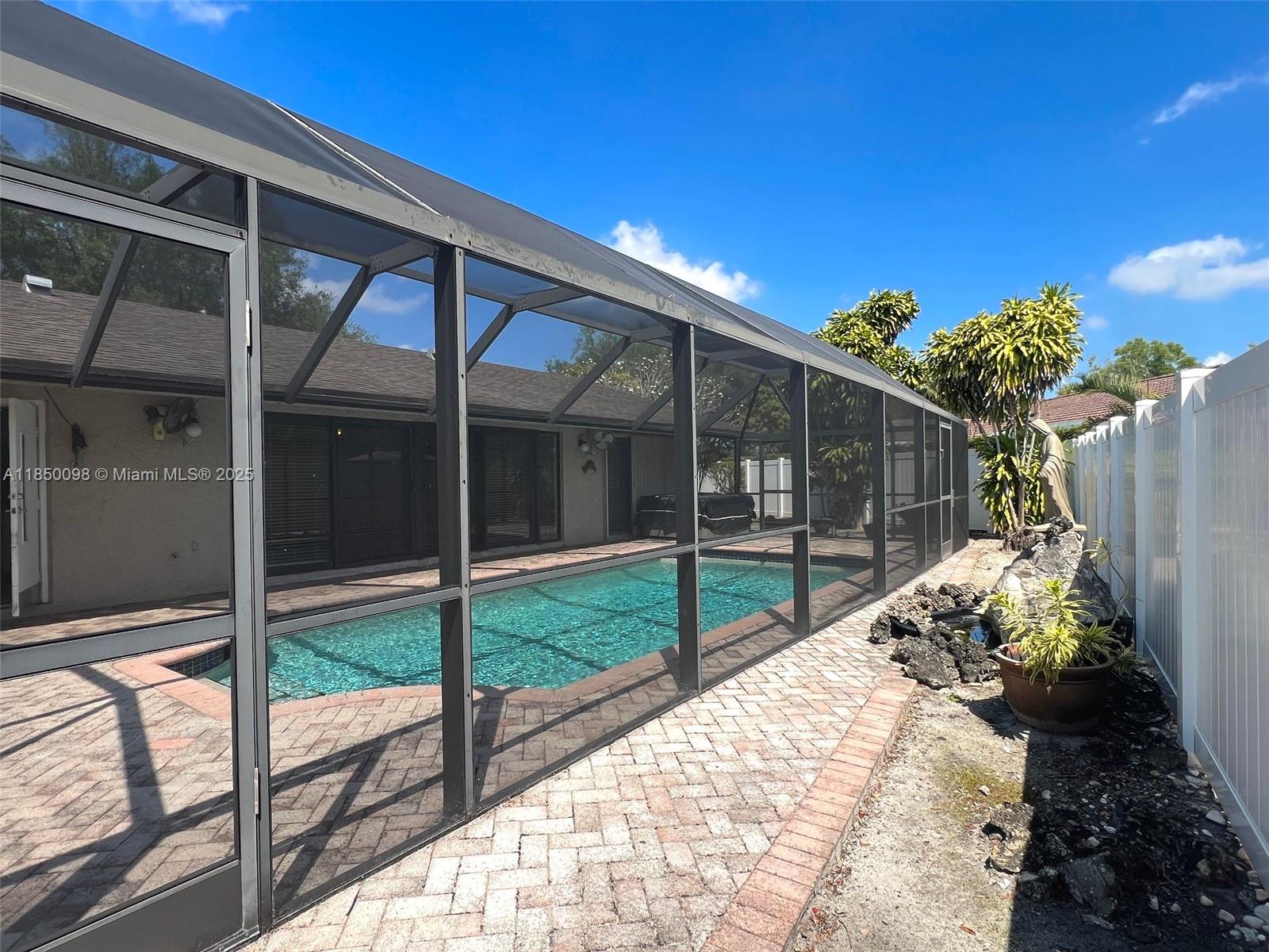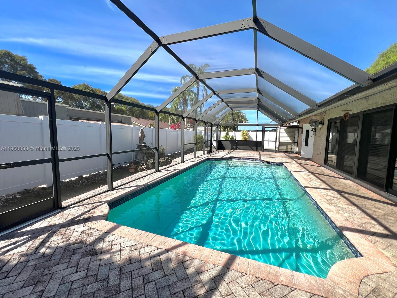 Back on the market due to Buyer's financing issues. This charming 3-bedroom, 2-bathroom home features a spacious living room, formal dining room, and abundant natural light throughout. Enjoy the convenience of a laundry room and a garage, along with a screened-in pool and hot tub. The entire property is enclosed by a durable PVC fence, and the circular driveway adds to the home's curb appeal. Additional highlights include a shed, high-impact windows in the living room, and two updated bathrooms. NO HOA! Roof was replaced in 2015! This property is located within an A+ school district and just a short walk to the community park, closed to shops and restaurants and major highways! This home is a perfect blend of comfort and convenience! Property is APPRAISED at asking price!
