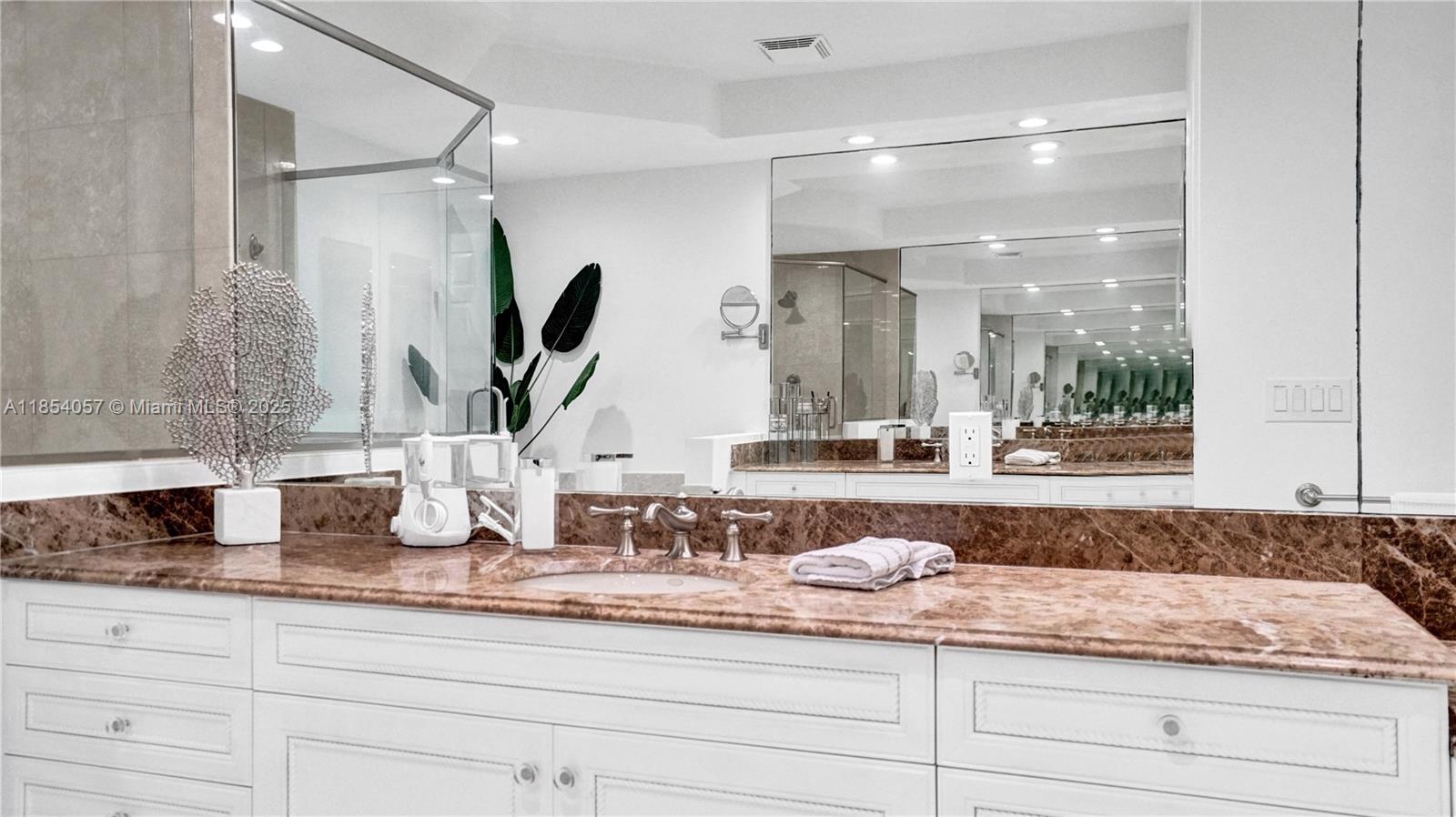 Located on a quiet tree-lined street in the prestigious gated community of Harbor Islands, one-of-a-kind spectacular 2-story home is upgraded with everything you would expect. 4 bedrooms & 4 full baths plus den & office. Private corner location with extra-large professionally landscaped yard with covered patio & courtyard entry. All the extras are already included: 1st floor bedroom, marble & wood floors, remodeled modern kitchen, remodeled baths, custom closets, automatic remote-control blinds and new a/c units, plus impact windows and doors. This home is in perfect move in condition. Enjoy the amenities: On-site health spa, 2 community pools, 2 playgrounds, lighted tennis, pickleball & basketball courts or take a walk in the community's 20-acre park. Harbor Islands has 24-hour security.