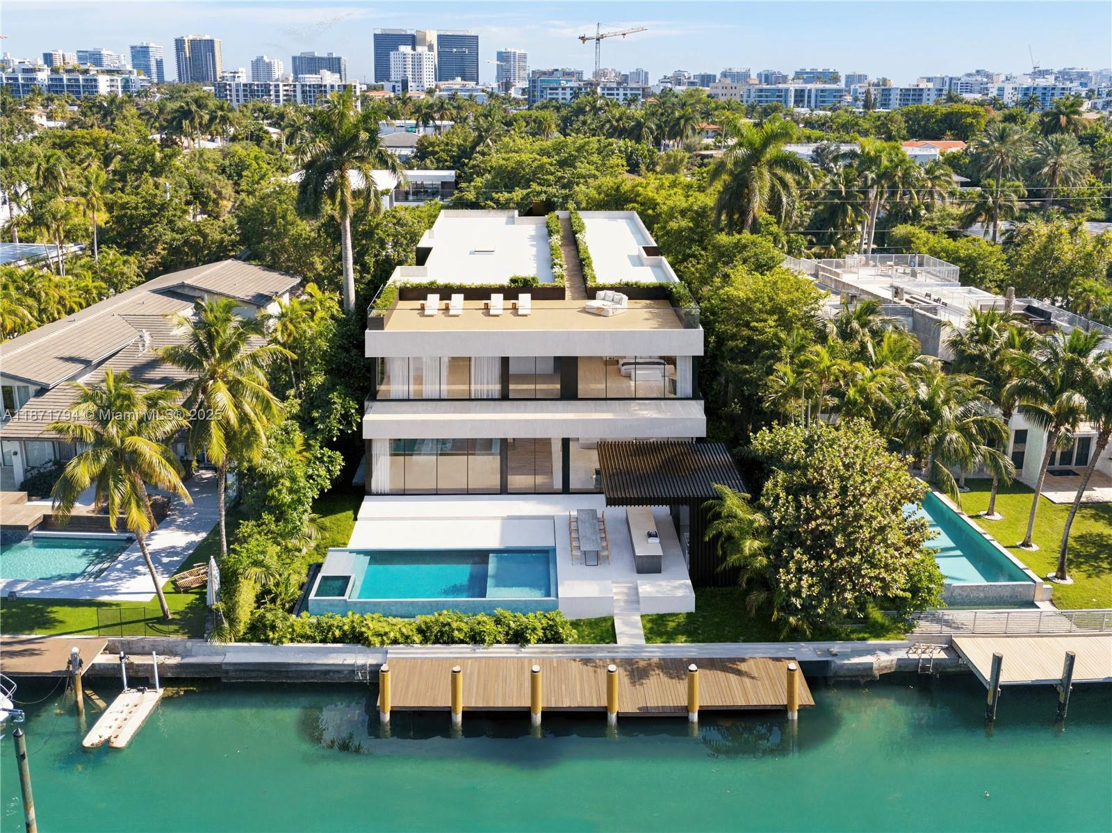 Presenting a spectacular brand-new waterfront estate. THE LARGEST HOME EVER BUILT IN BAY HARBOR! Offering 10,500 SF of ultra-luxury living with panoramic open-bay views, this masterpiece sits on 83 feet of prime waterfront with direct ocean access, private dock, boat lift, and breathtaking sunsets. The estate features 7 spacious en-suite bedrooms, a private cinema, an office & library. The chef's kitchen with double islands flows into a dramatic 30-foot dining room ceiling, complemented by a wine cellar, elevator, smart-home technology, and luxury finishes throughout. Outdoor living boasts an infinity mosaic-glass pool with Jacuzzi and spa, a full outdoor kitchen, cabana, sauna, and a 2,000 SF rooftop deck--delivering the ultimate resort lifestyle. Estimated completion: 3 months.