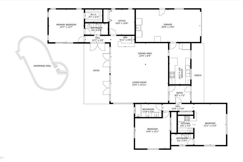 Renovated home in the HIGHLY SOUGHT-AFTER Hollywood Hills Community. It has 4 bedrooms, 3 baths, and offers a great 2/2 split layout. There's even a full kitchenette on one side to accommodate multi-generational living. The home features tile flooring in the main living spaces, lots of light and an expansive living/dining room that's ideal for entertaining. The modern well-appointed kitchen has quartz counters, stainless steel appliances, and ample storage. You'll love lounging under the covered sun porch out by the pool. Here you'll be walking distance to some of the best schools, parks, the Circle, dining, entertainment, and so much more.