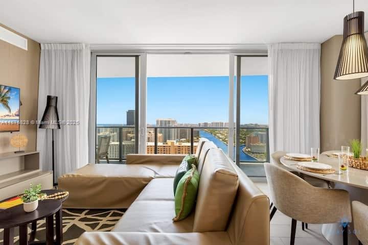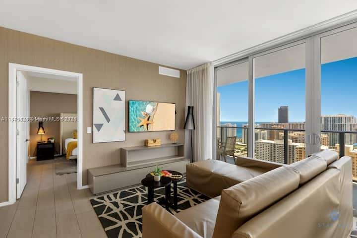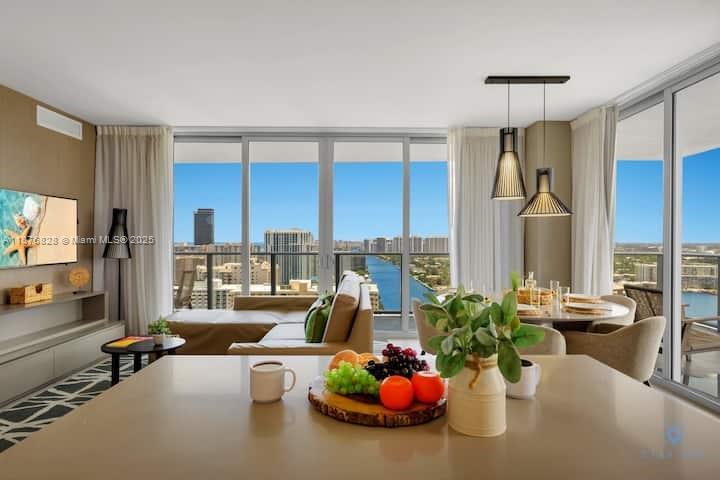 Live or invest in this beautiful 3 bedroom 2.5 bath!! Corner unit with breathtaking ocean, intracoastal and City views from each room. Unit comes elegantly fully furnished. Five star resort-style amenities with full concierge service, access to oceanfront private beach club, three heated overside pools, cabanas, spa, state of the art gym, rooftop lounge & common area with BBQ, tennis court, racquetball, high speed internet in all public areas, 24 hrs security, free valet parking. Maintenance includes electricity, cable, internet & water. The perfect vacation home and/or your income producing property. Unit management by Stay Sol. NO RENTAL RESTRICTIONS!!