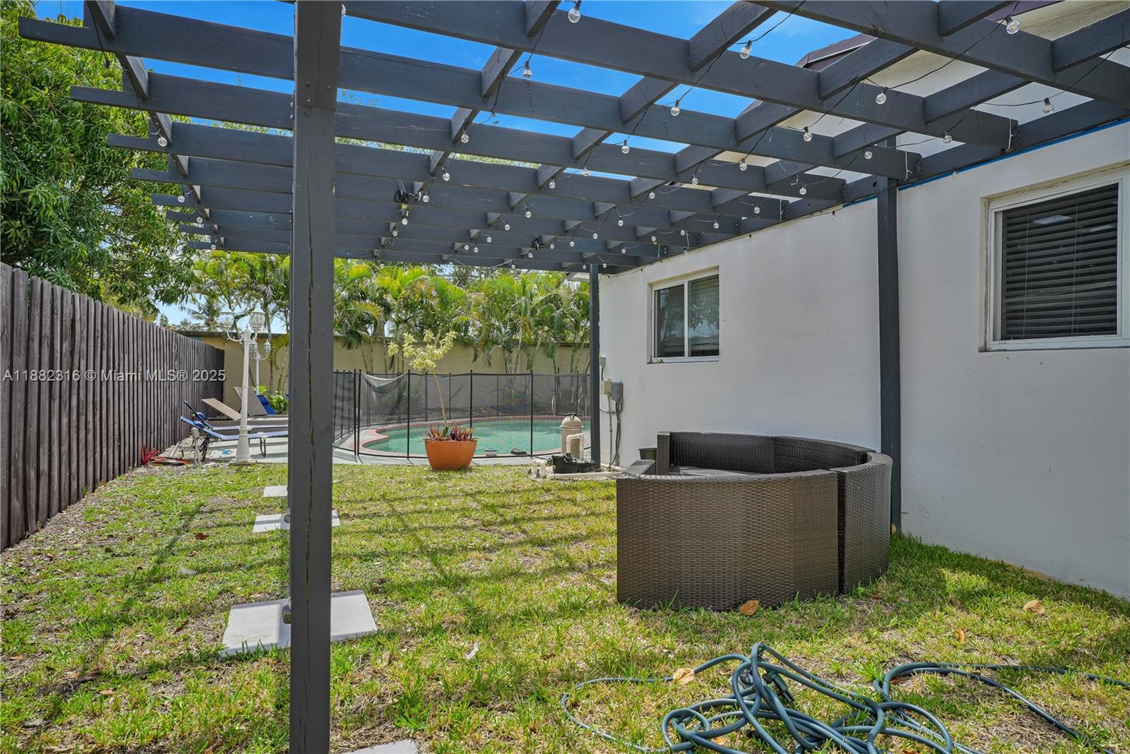 Nestled in the private community of Pickwick Lake Estates, this fully furnished home offers comfort and convenience. Featuring four bedrooms plus an extra room, two bathrooms, a beautiful kitchen, a spacious living room, and a dining area, it's designed for modern living. The stunning outdoor space includes a heated pool, covered dining, a cozy chill area, poolside beds, a swing set for kids, and a shed for outside storage. Located less than a quarter mile from I-95, under 20 minutes to the beaches, and within walking distance to places of worship, this home is perfect for those seeking tranquility with easy access to everything.