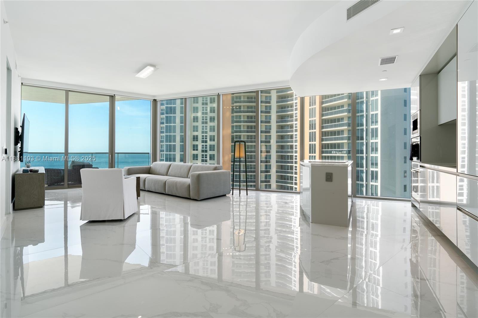 Experience the Armani lifestyle in this oceanfront gem at Sunny Isles Beach. This elegant 2 bedroom + den, 2.5 bathrooms residence showcases 10-foot ceilings and floor-to-ceiling windows framing breathtaking ocean and city views. An oversized balcony with a summer kitchen extends your living space outdoors. Inside, Armani's signature touch is reflected in the custom finishes and top-tier appliances. Residents enjoy an unmatched collection of amenities, including private oceanfront dining, the tranquil Armani Spa, a state-of-the-art fitness center with direct beach access, movie theater, cigar lounge, children's playroom, and more.