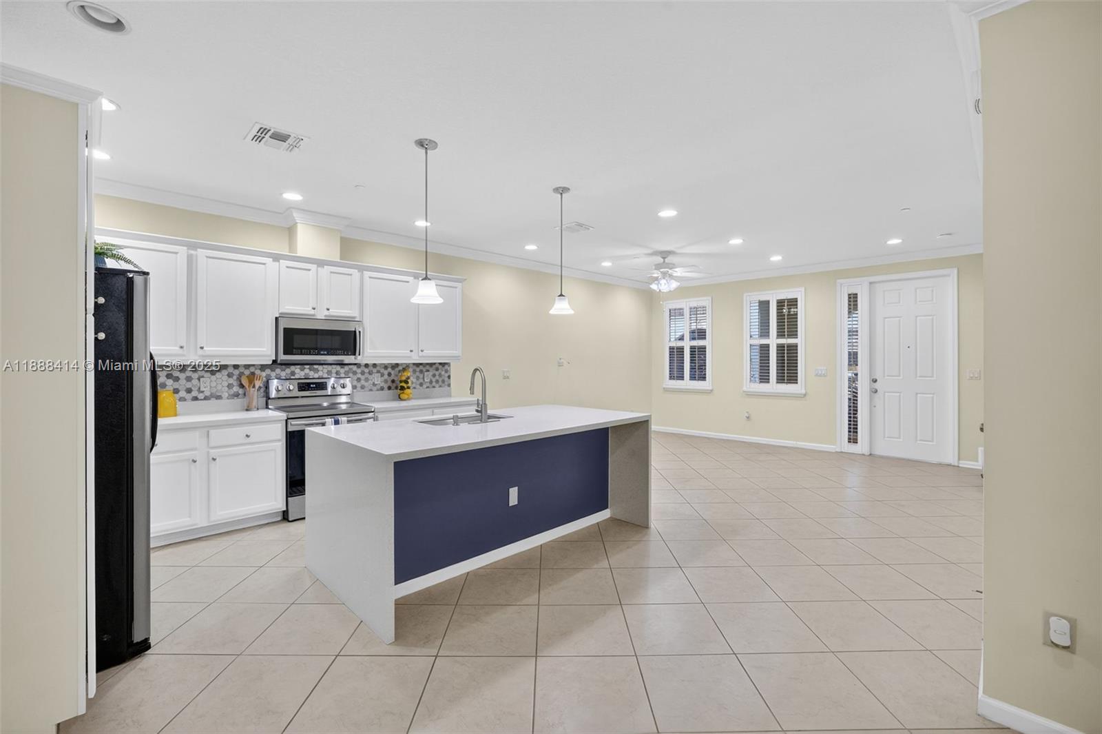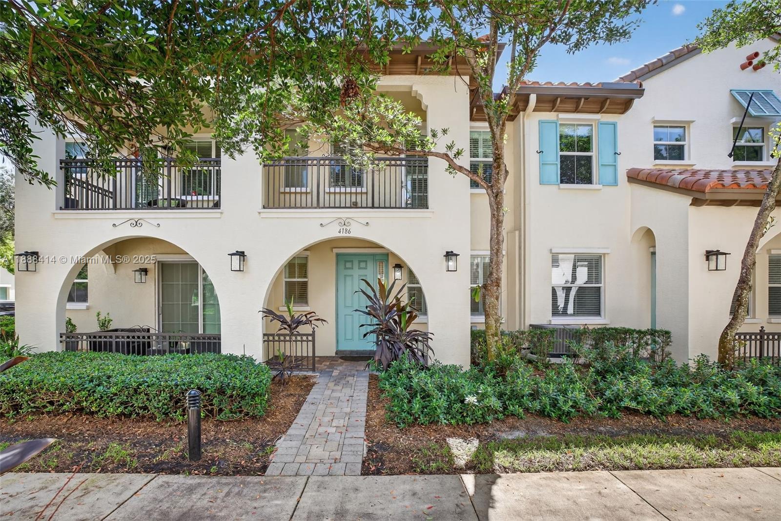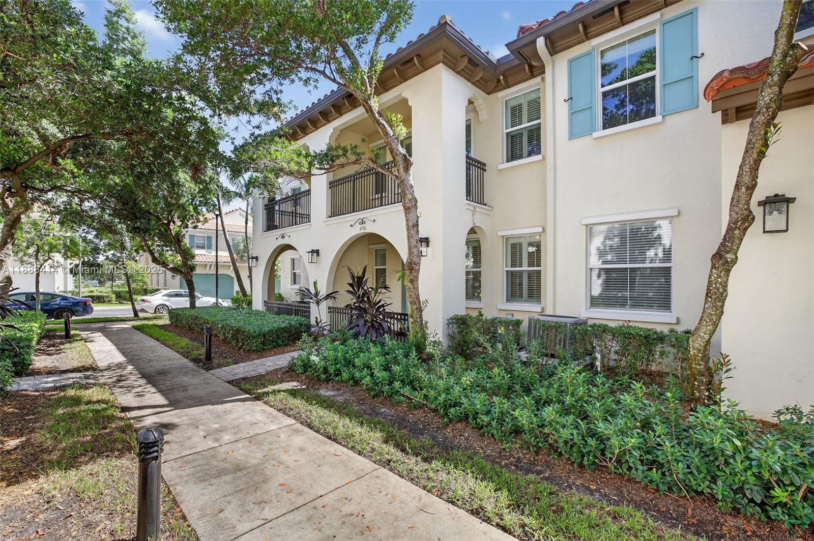 Your future home awaits in Cascada at Monterra! Chef-inspired kitchen features white cabinets, quartz counters with waterfall edge, backsplash, stainless steel & oversized island with sink. Open-concept living enhanced by recessed lighting. Convenient half bath downstairs. Upstairs primary suite accented by double-doors, balcony overlooking garden courtyard, walk-in closet with cabinets & spa-like bath with dual sinks & oversized walk-in shower. Second upstairs bath with tub/shower combo. Dedicated laundry room + linen closet. Tile floors downstairs; laminate upstairs. Freshly painted interiors, plantation shutters, ceiling fans in all rooms & living room. Impact windows & Ecobee thermostat. Wired for alarm. Built-in garage storage. NEW dishwasher & fridge ice maker. Zoned for A-schools!
