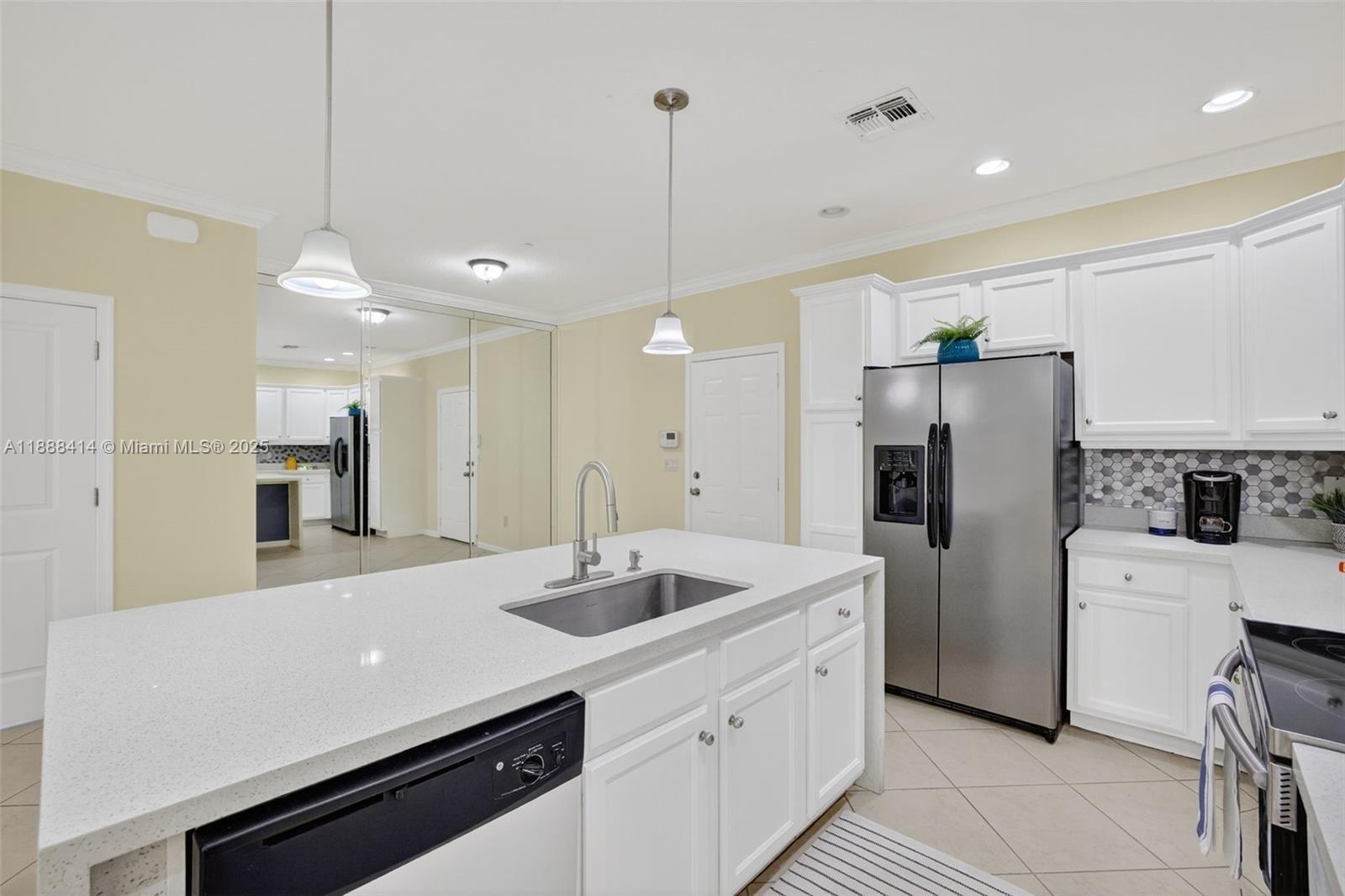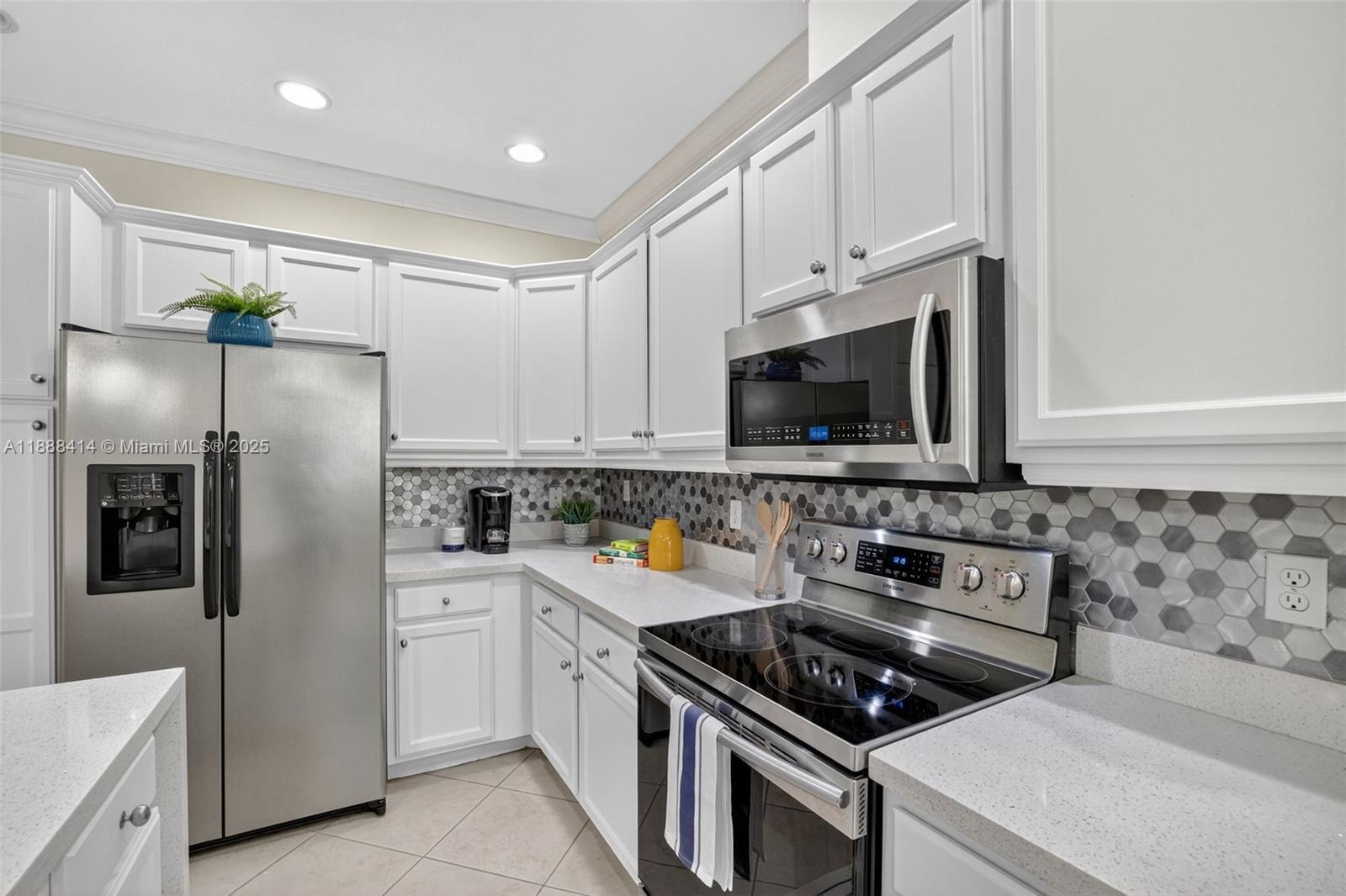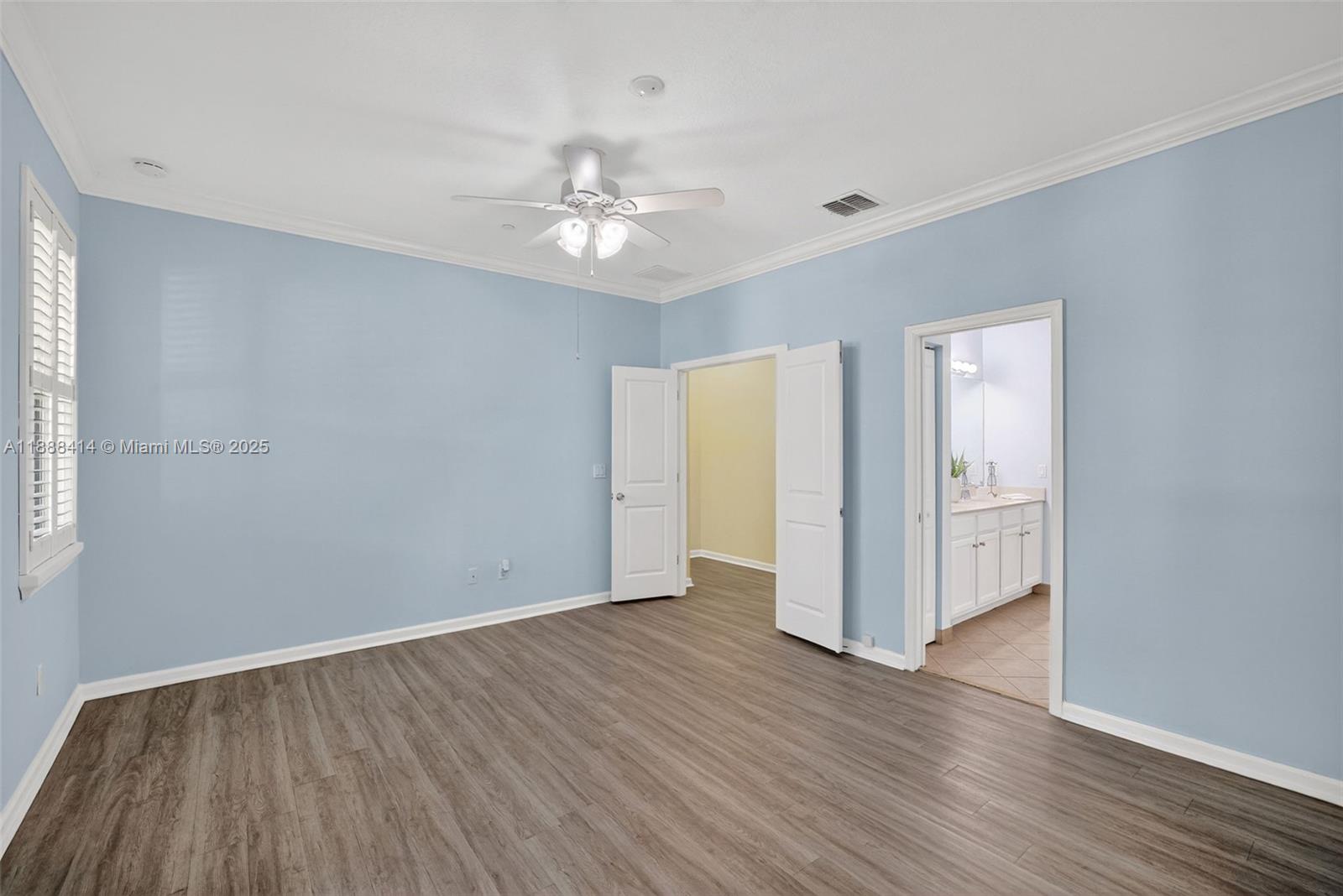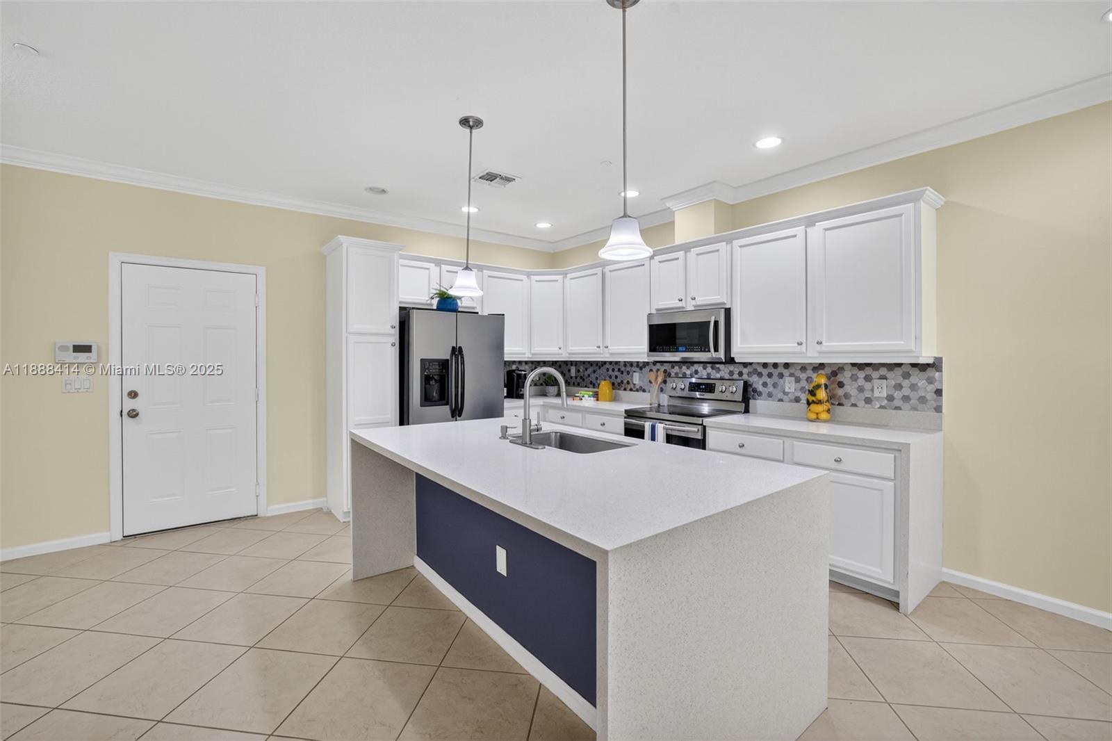 Your future home awaits in Cascada at Monterra! Chef-inspired kitchen features white cabinets, quartz counters with waterfall edge, backsplash, stainless steel & oversized island with sink. Open-concept living enhanced by recessed lighting. Convenient half bath downstairs. Upstairs primary suite accented by double-doors, balcony overlooking garden courtyard, walk-in closet with cabinets & spa-like bath with dual sinks & oversized walk-in shower. Second upstairs bath with tub/shower combo. Dedicated laundry room + linen closet. Tile floors downstairs; laminate upstairs. Freshly painted interiors, plantation shutters, ceiling fans in all rooms & living room. Impact windows & Ecobee thermostat. Wired for alarm. Built-in garage storage. NEW dishwasher & fridge ice maker. Zoned for A-schools!