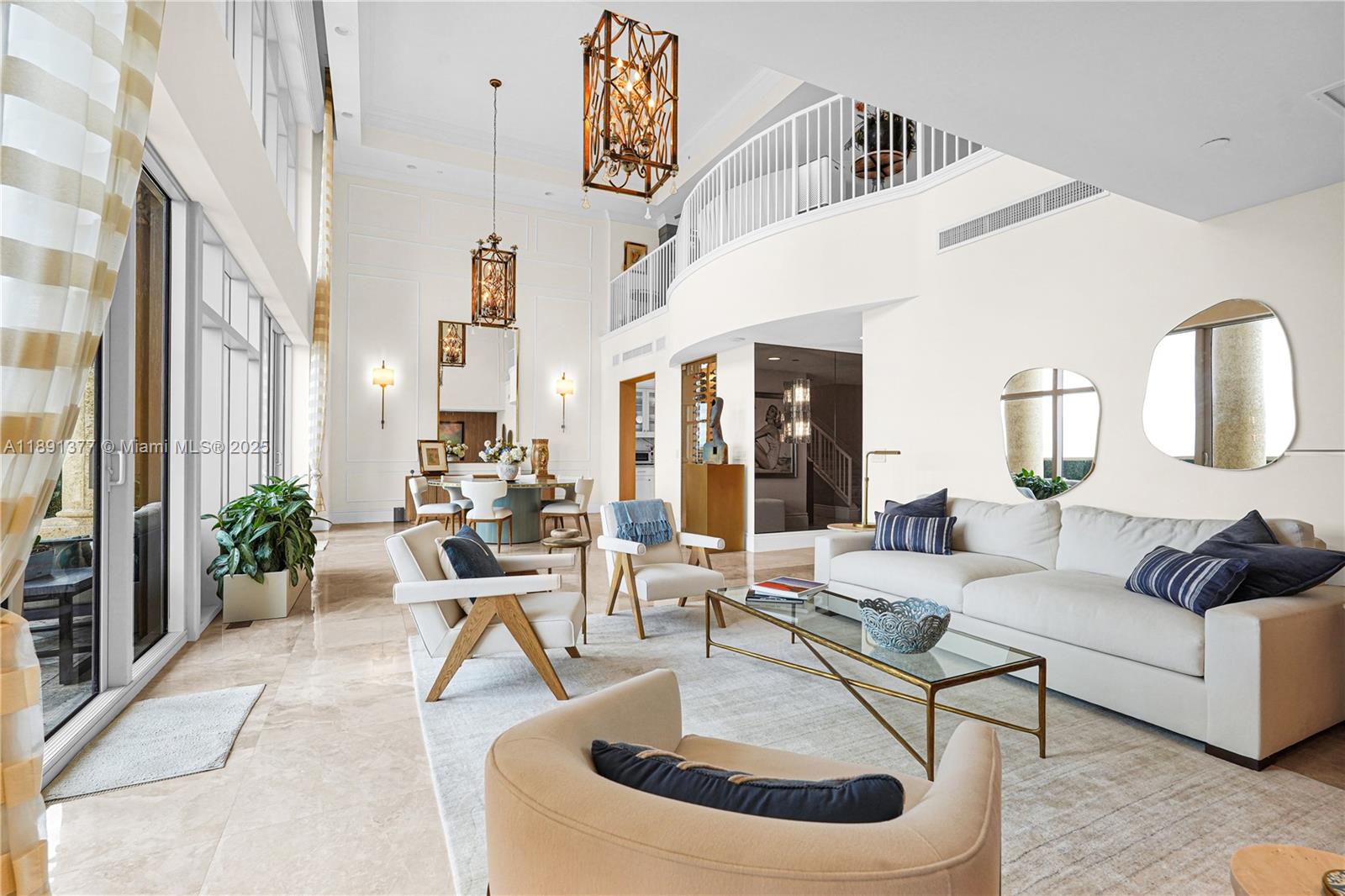 Welcome to Penthouse 7 at Villas of Positano, a stunning two-story oceanfront residence in the heart of Hollywood Beach. This fully furnished designer home offers 3,683 sq. ft., 3 bedrooms + den | 3.5 bathrooms, soaring 21-ft ceilings, a private elevator, and a 797 sq. ft. terrace showcasing breathtaking ocean, bay, city, and park views. Features include marble floors, a remodeled Italian gourmet kitchen, a grand living room, a primary suite on the main level, and an entertainment mezzanine. Enjoy resort-style amenities: oceanfront pool, spa, fitness center, concierge, valet, and direct beach & marina access--the perfect blend of privacy, sophistication, and coastal luxury.