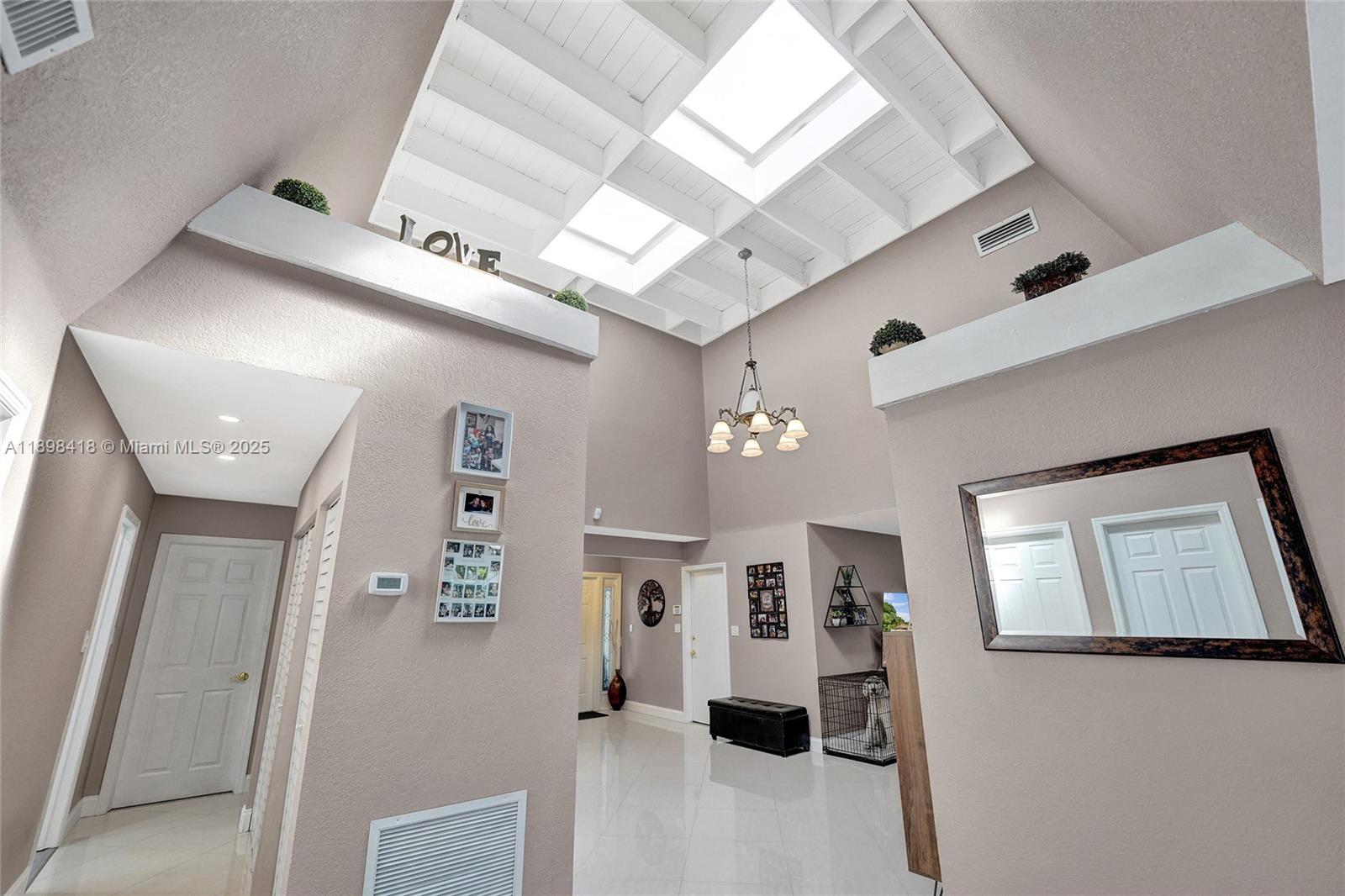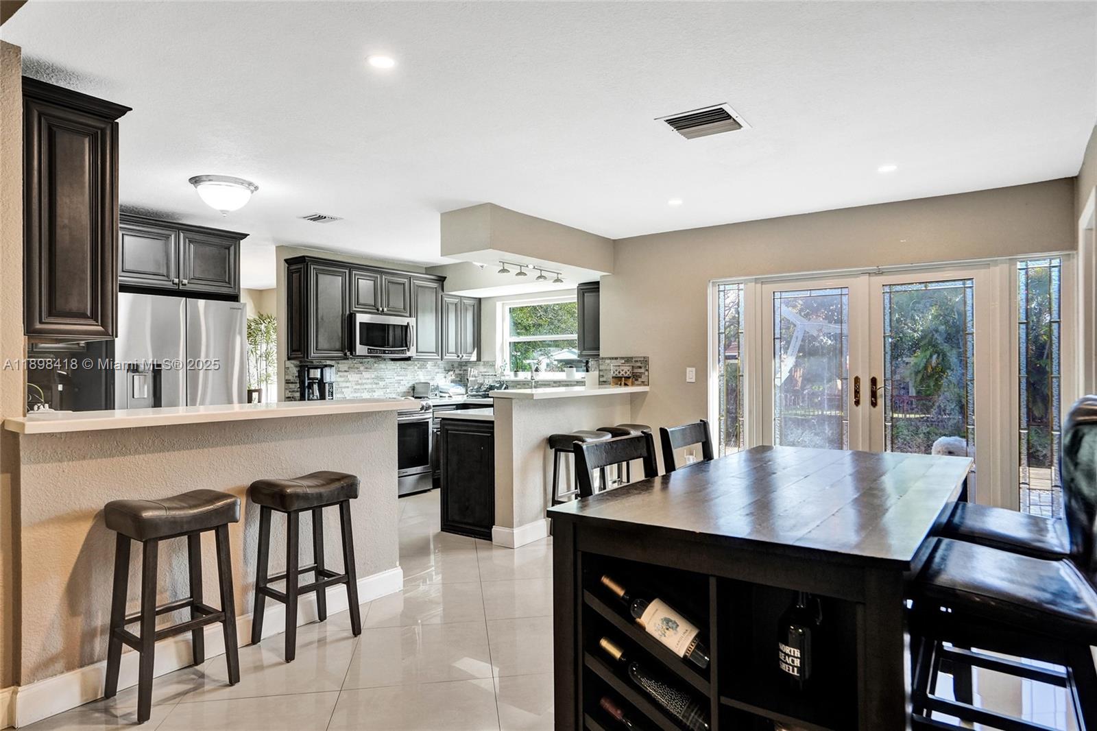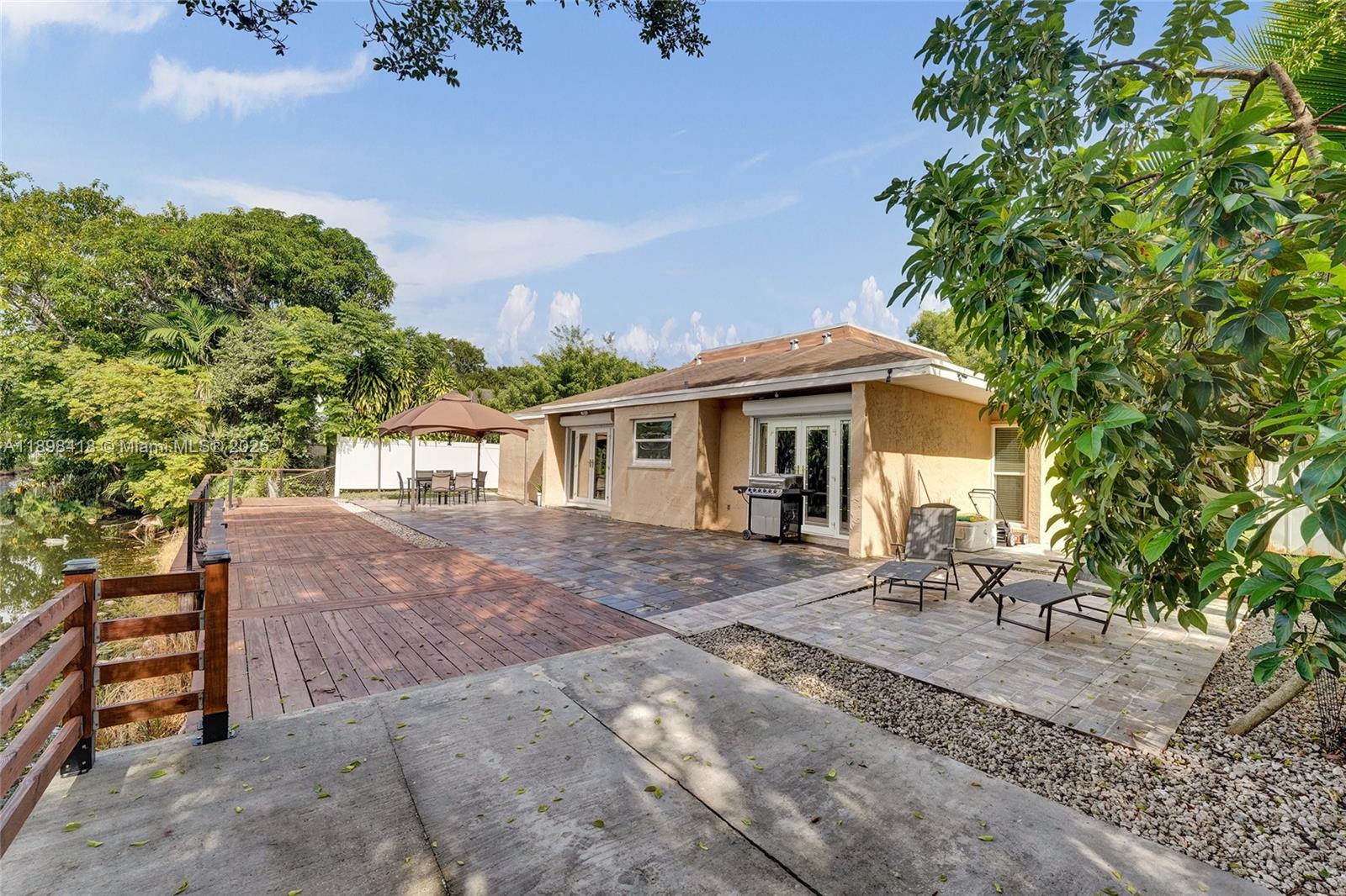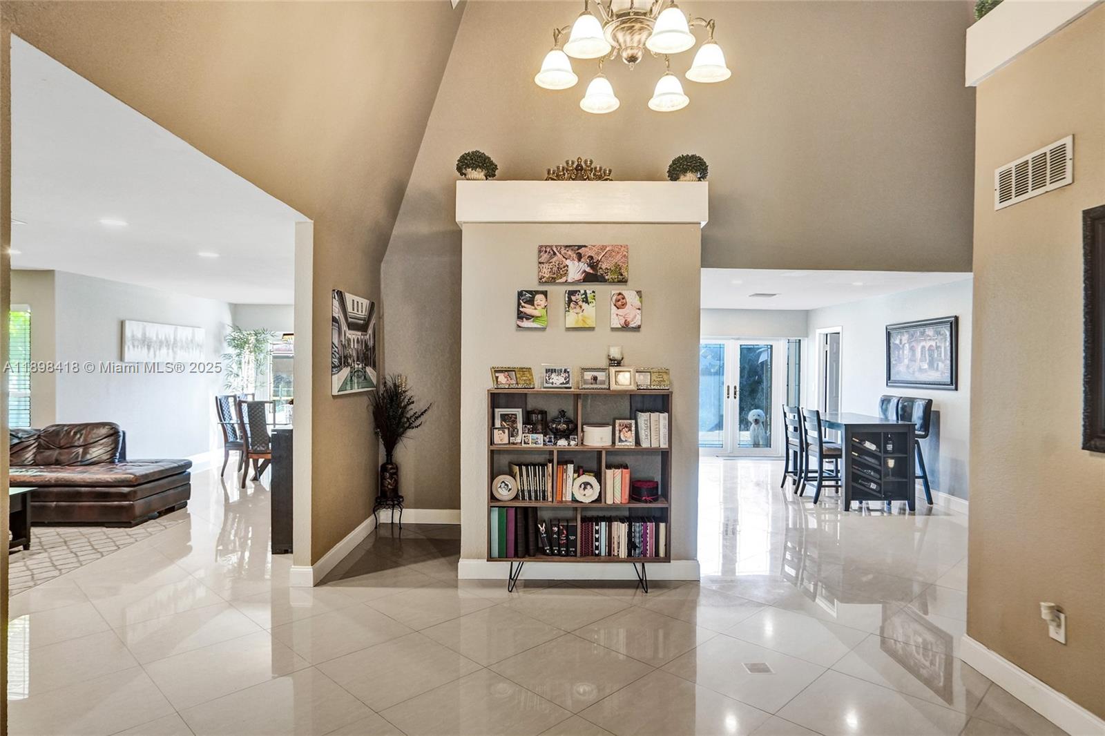 Welcome! Beautifully updated 4-bedroom, 2.5-bathroom home in a desirable neighborhood with no HOA. You'll love the large front porch, perfect for sipping your morning coffee, greeting neighbors or unwinding. Inside, enjoy soaring high ceilings and an open floor plan with large white tile flooring throughout, creating a bright and modern feel. The updated kitchen features plenty of cabinetry and space for entertaining. Hurricane-impact windows and front door for peace of mind. Garage has been converted into living space, offering flexibility for a playroom, office, gym or can easily be converted back into a garage. Step outside to your backyard oasis, where you can enjoy outdoor living along a scenic canal--perfect for fishing, boating, or breathtaking sunsets. New tankless water heater!