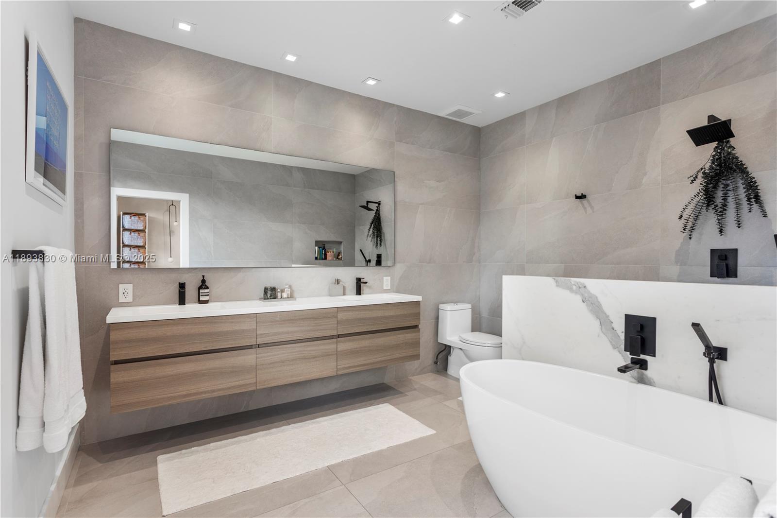 Stunning and modern 3/2.5 townhome in a secure, gated community just steps from houses of worship and minutes from the beach! This beautiful residence features a designer kitchen, premium Bosch stainless-steel appliances, playroom and chic bar, creating the perfect space for cooking and entertaining. Spa-inspired bathrooms, luxury flooring, and elegant finishes flow throughout. Step outside to a private enclosed backyard with lush artificial turf, ideal for relaxing or hosting guests. Spacious master suite includes his and hers closets and freestanding tub and shower. Brand new roof (2025), stylish lighting, and a truly move-in-ready interior. Perfectly located near top schools, shopping, and major highways, this home combines modern luxury, comfort, and South Florida convenience.