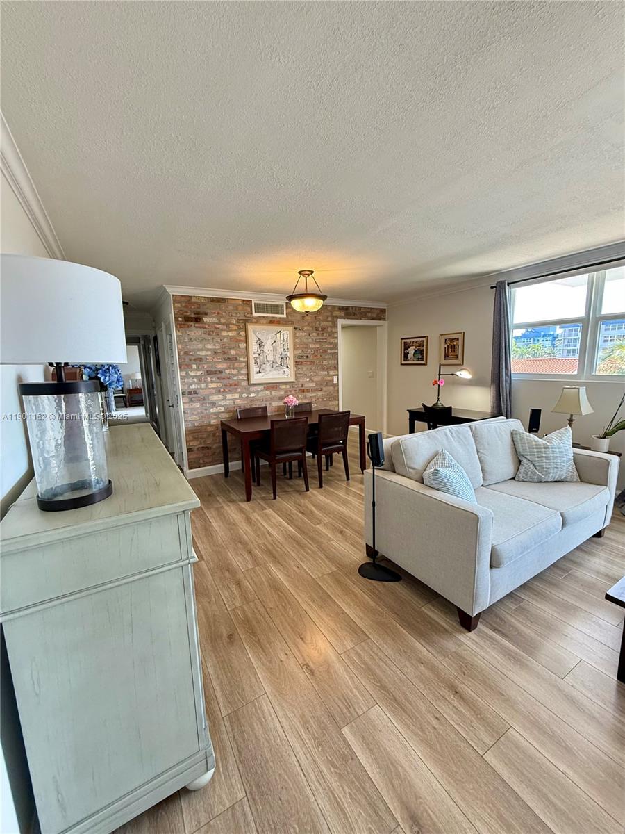 Turn-key 1BD - 1.5BATH unit in the heart of North Miami Beach! Fully upgraded with hurricane impact windows, KraftMaid kitchen cabinets, electrical water heater, crown molding, and a stunning accent wall with original Chicago bricks. Features 2 private balconies and a spacious walk-in closet. Located in a quiet neighborhood just minutes from Sunny Isles Beach, Aventura Mall, Oleta Park, and top dining. Don't miss out on this rare opportunity to own or to rent a stylish, move-in ready unit in a prime location! Investors Welcome!